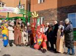 Гуляния начались с народных игр и забав. Шутками и прибаутками встречали детей веселые и задорные скоморохи. Баба-Яга и ее конь Юлий вместе с детьми участвовали в перетягивании каната, в эстафете со сковородками и блинами.