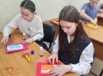 Наталья Геннадьевна предложила ребятам сделать открытку-аппликацию. Они выбрали цветную бумагу для основы, а для декора – бусинки и стразы. Перед началом работы повторили правила техники безопасности и закрепили навыки работы с бумагой, ножницами и клеем.