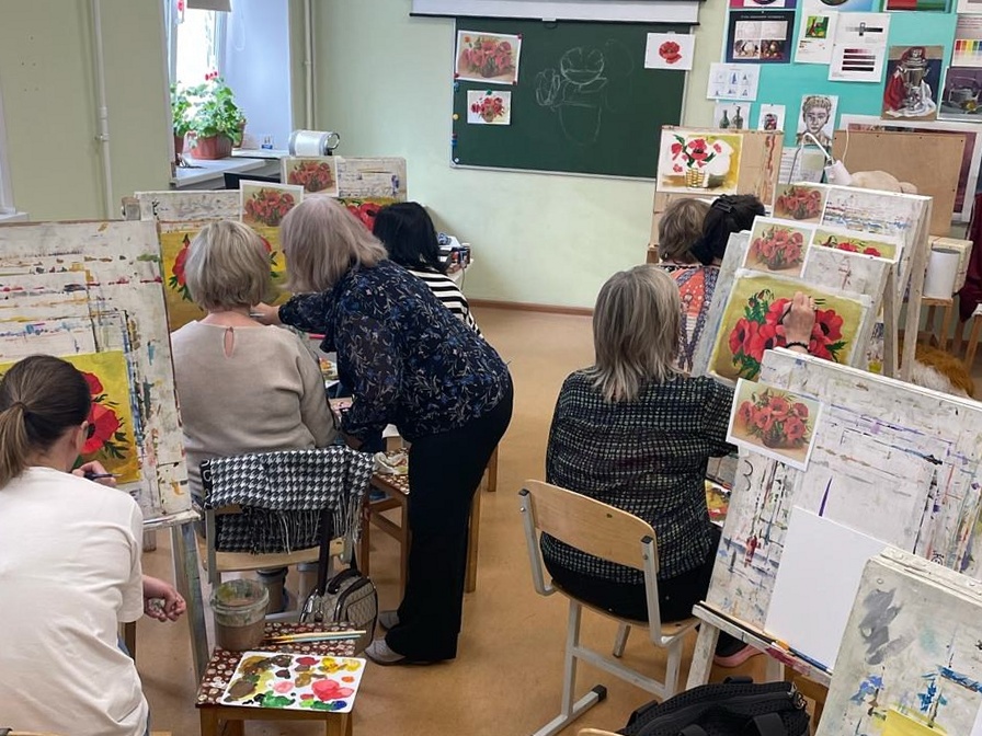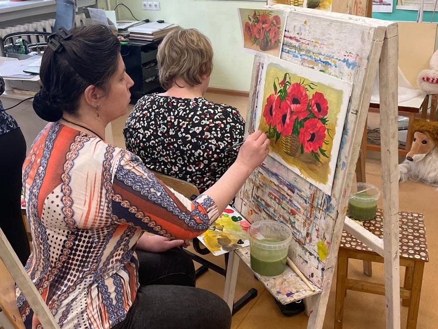 На базе УО «Приморская» ЦДТ Советского района прошёл мастер-класс по живописи для родителей и педагогов, который провела Л. В. Якубова, ПДО образцового коллектива ШХТ «Цветень».