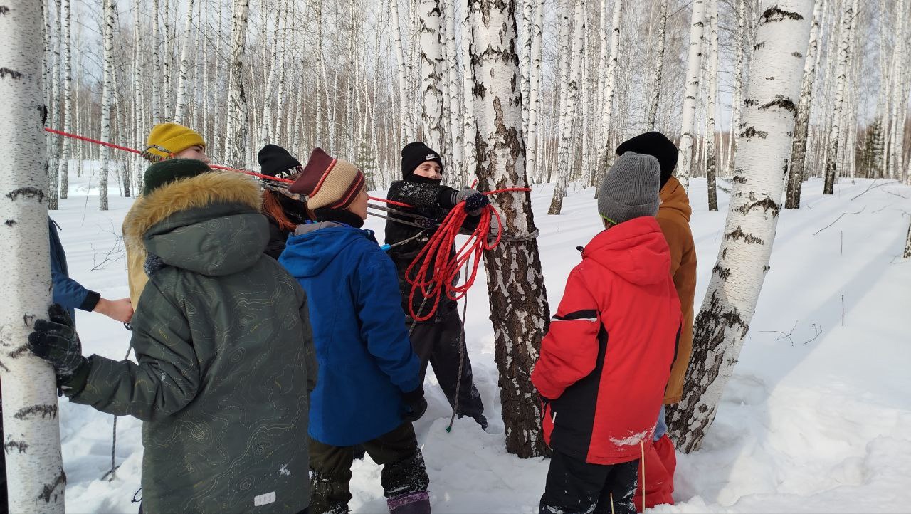 Во-первых, отрабатывались общие туристские навыки: движение по полевым дорогам и снегоходкам (дороги, накатанные снегоходами), тропление по глубокому снегу, сбор валежника.