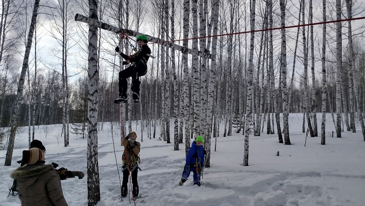 В-третьих, отработали несколько технических приёмов: «спуск по склону по перилам» и «подъём по склону по перилам»; «переправа по параллельным перилам»; блок этапов «навесная переправа – спуск по перилам».