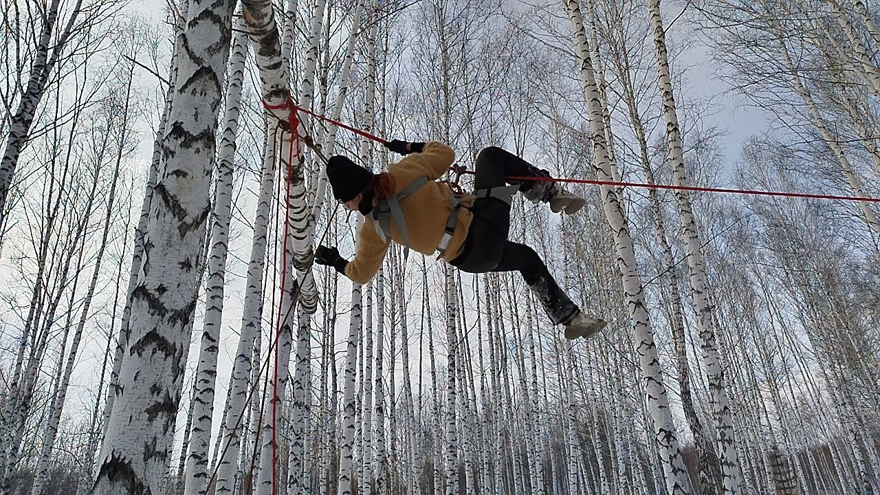 Во-вторых, научились применять на практике узлы, изученные на аудиторных занятиях. Убедились, почему для крепления верёвки к опоре в разных ситуациях – для вертикальной верёвки (применяется для спуска и подъёма по склону) или для горизонтальной (используется для переправ) – нужно завязывать разные узлы. Кроме этого, научились применять «глухой» полиспаст и тройной полиспаст.
