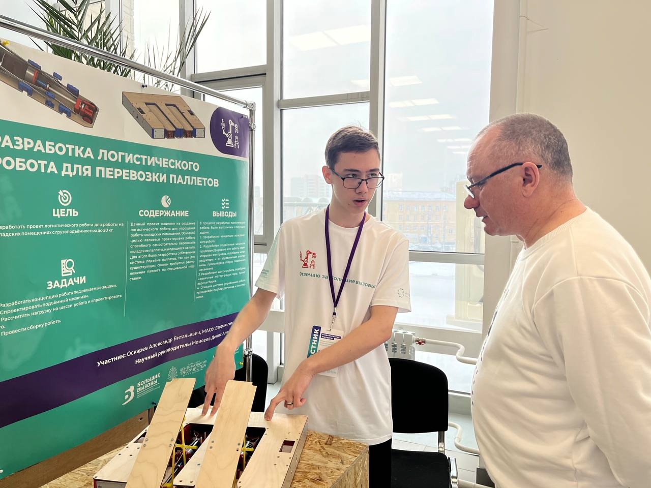 – Александр Оскарев, 11 класс. Тема «Разработка логистического робота для перевозки паллетов».