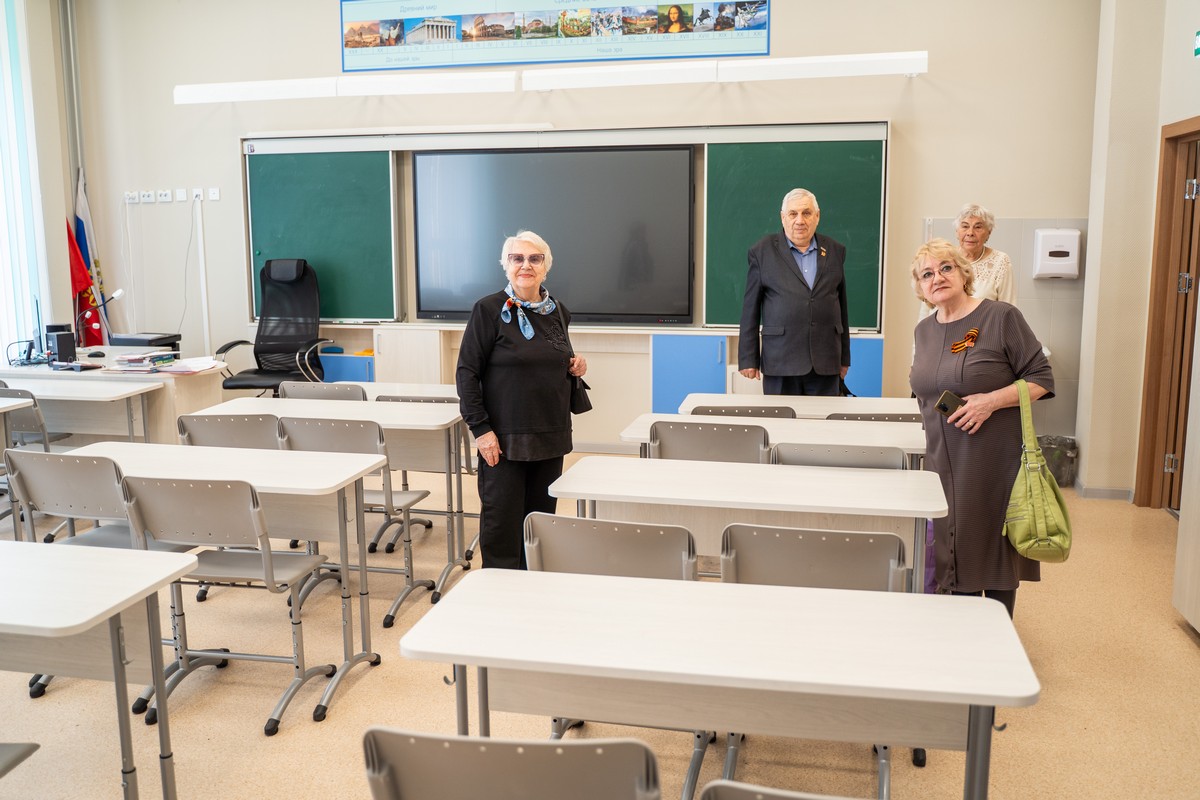 Для ветеранов педагогического труда была проведена экскурсия по школе, показаны учебные кабинеты, спортивный зал, музей.