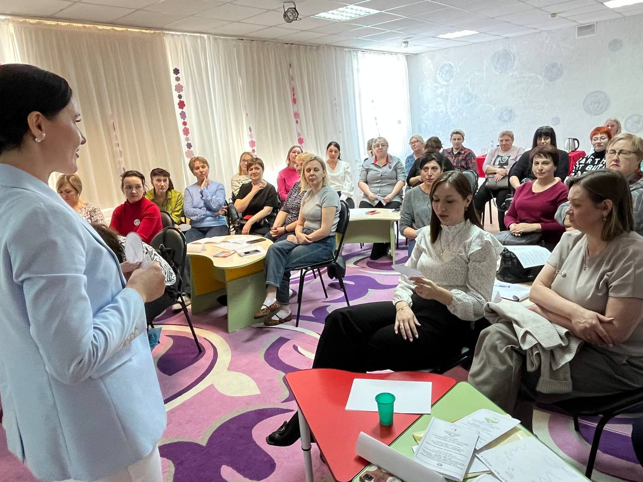 На педагогической мастерской «Пространство общения с родителями – грани новых возможностей» коллектив стажировочной площадки детского сада № 453 совместно с ДОО-стажерами №№ 234, 372 и 440 провели мастер-классы, на которых участники встречи познакомились с разработкой соглашения о сотрудничестве с коллективом родителей как инструментом поддержки осознанного и ответственного родительства; нетрадиционными техниками рисования, научились сочинять загадки и изготовили экологическую игрушку «Травянчик».