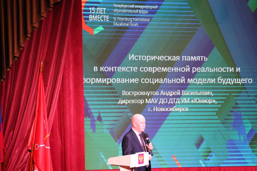 Опыт Новосибирского городского Дворца детского творчества «Юниор» представлен на XV Петербургском международном образовательном форуме. В 2025 году в рамках форума состоялось более 350 мероприятий по таким тематическим блокам, как «Воспитание гражданина», «Дети с особыми образовательными потребностями», «Учитель», «Кадры для экономики и технологический суверенитет» и «Специальные мероприятия».