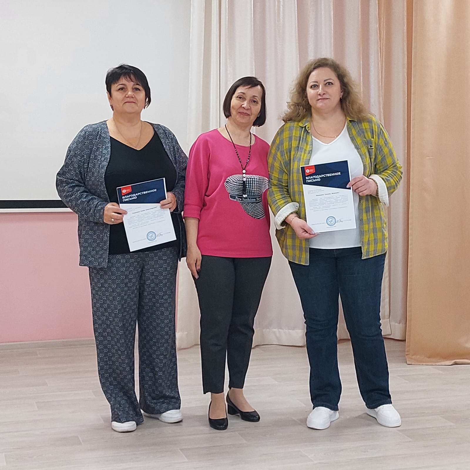 По итогам городской методической недели «НовоСибСад – территория развития дошкольного образования» за активное участие в организации и проведении интерактивной мастерской «Давайте поиграем!» на площадке детского сада № 44 «Мозаика» благодарственные письма и сертификаты «Новосибирского Института Современного Образования» были вручены Барсуковой Елене Александровне, заведующему МАДОУ д/с № 44 «Мозаика», Проскуриной Татьяне Ивановне, старшему воспитателю МАДОУ д/с № 44 «Мозаика», Пановой Ирине Сергеевне, воспитателю МАДОУ д/с № 44 «Мозаика», Бушуевой Алене Викторовне, воспитателю МБДОУ д/с № 28, Сизиковой Наталье Олеговне, воспитателю МБДОУ д/с № 30 и Адякиной Анне Васильевне, педагогу-психологу МАДОУ д/с № 298.