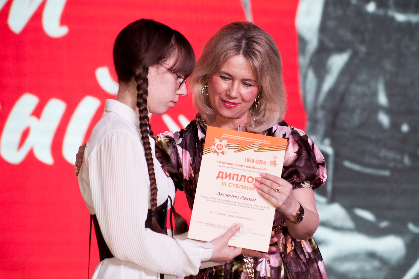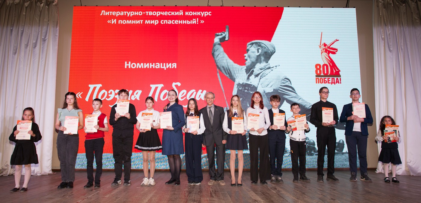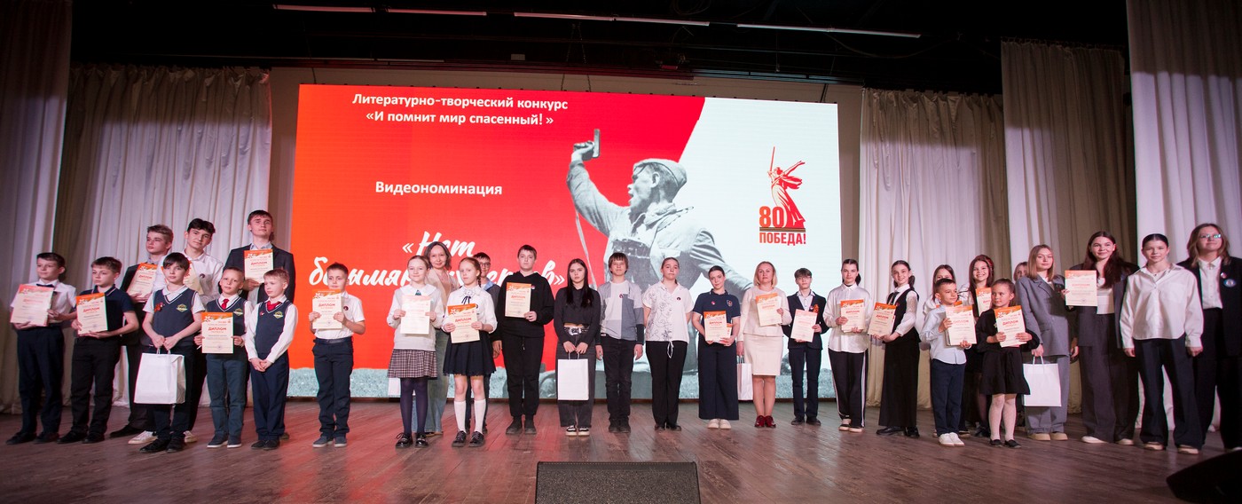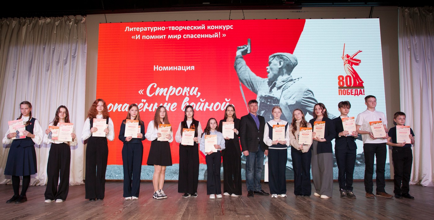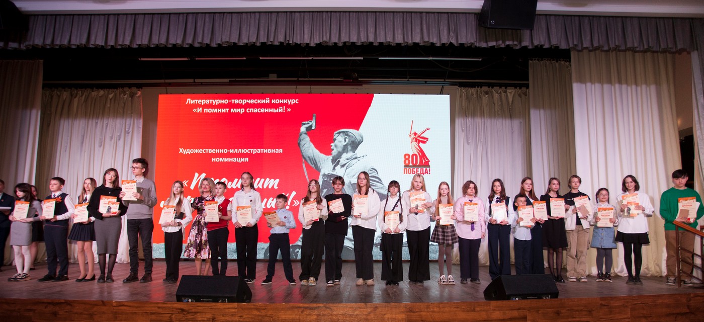 23 апреля в концертном зале Дворца творчества детей и учащейся молодёжи «Юниор» состоялась торжественная церемония подведения итогов городского литературно-творческого конкурса «И помнит мир спасённый!», посвящённого 80-летию Победы в Великой Отечественной войне 1941-1945 гг.