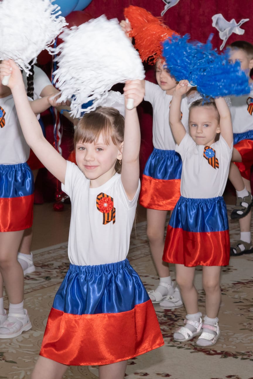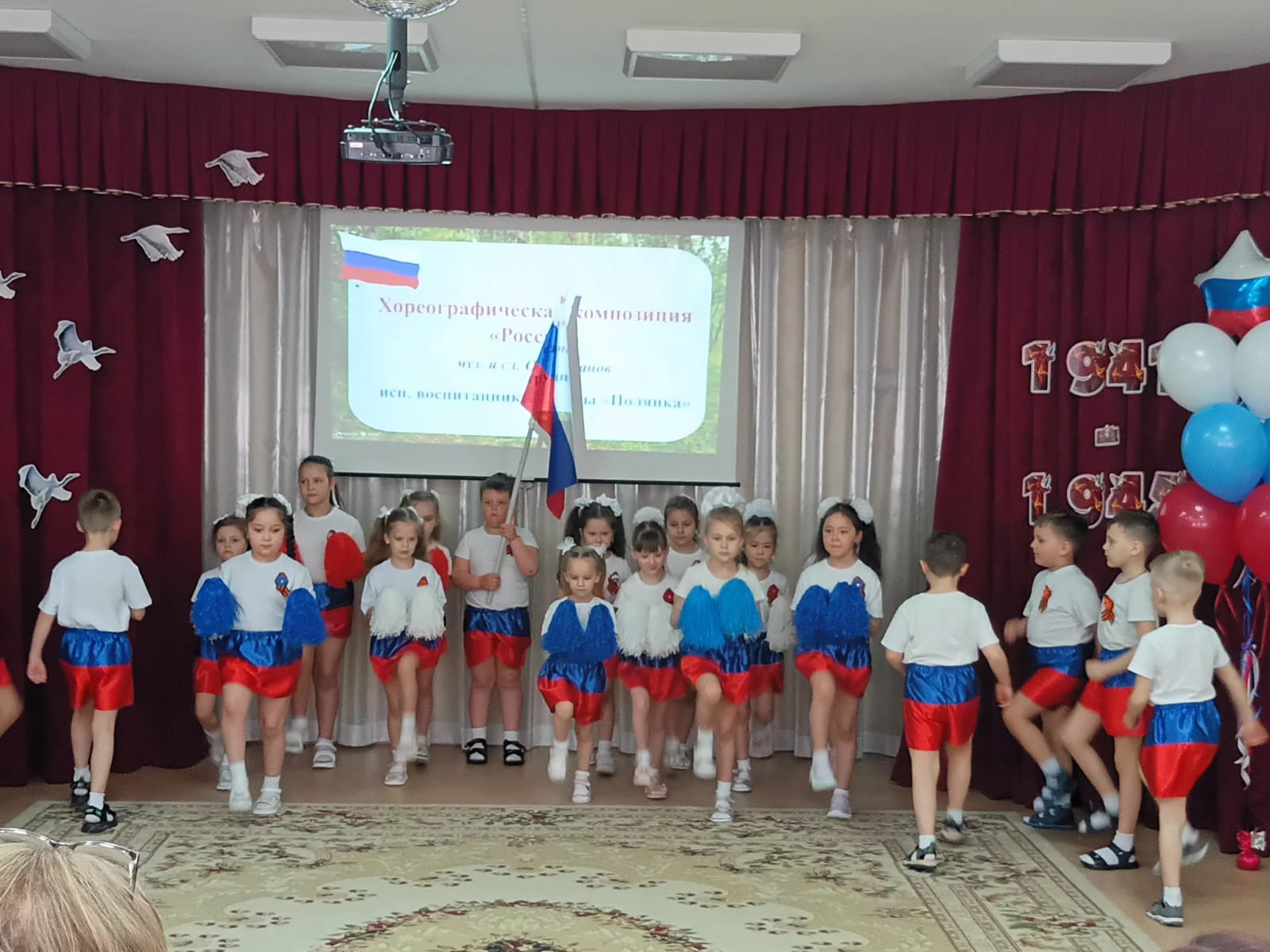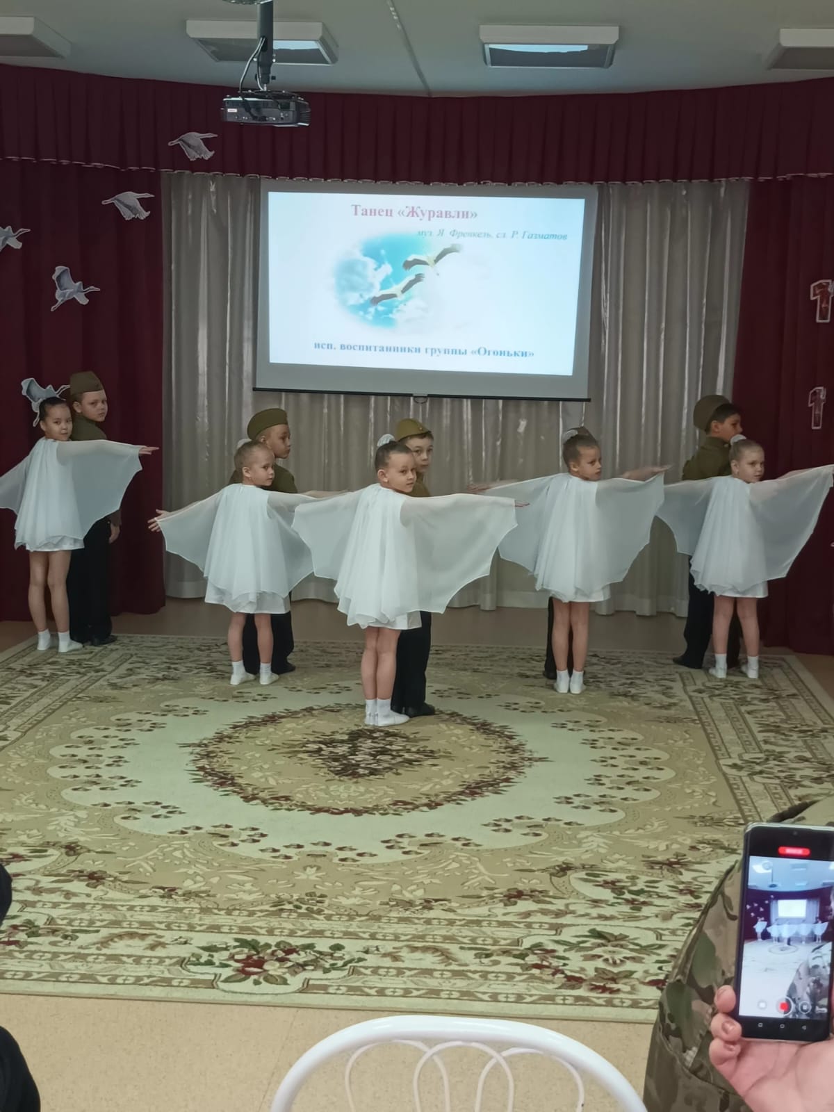 А потом были замечательные номера, выполненные с душой: хореографическая композиция «Россия», представленная воспитанниками группы «Полянка» (воспитатели Назарова И. В. и Павелкова А. В.), танец с полотнами «А закаты алые» представили пятилетние девочки из группы «Ручеек» (воспитатели Шмидт И. Н. и Пушкарева Л. А.); стихотворение «Почему в России выстрелы гремят» исполнили воспитанницы группы «Полянка» с воспитателем Назаровой И. В.; а сколько души вложили дети из группы «Огоньки» (воспитатели Метельская Е. С. и Глебова С. В.) в композицию «Журавли»! Когда на последних аккордах, уходя от нас, они повернули к зрителям свои сосредоточенные лица, как бы говоря: «Не забывайте нас!», мороз пошел по коже. Точно также на одном дыхании хореографическая группа «Атика» представила танец «Небеса»; зал просто замер, когда появились эти красивые девушки в длинных белых платьях и, выдохнув на последних звуках песни, взорвался аплодисментами. А как исполнила песню «Катюша» Ю. В. Данченко, наш музыкальный руководитель! Глядя на нее, задорно пританцовывавшую, в солдатской гимнастерке и пилотке, кажется, что перенесся в те страшные времена, и эта девчонка сейчас потащит на себе с поля боя раненого бойца.
