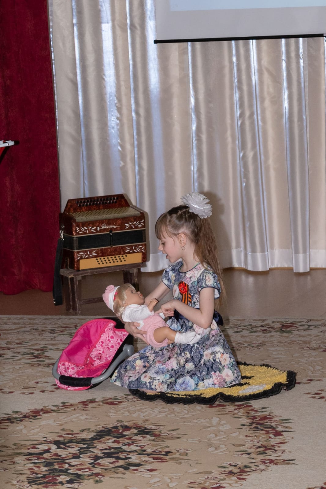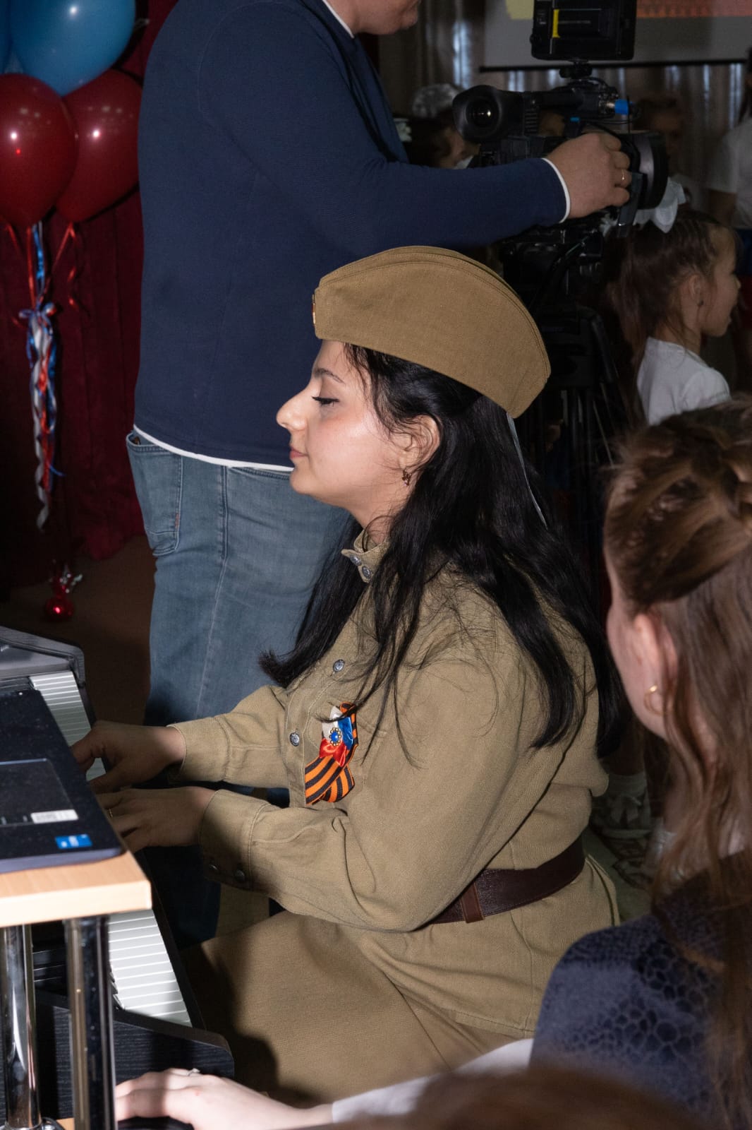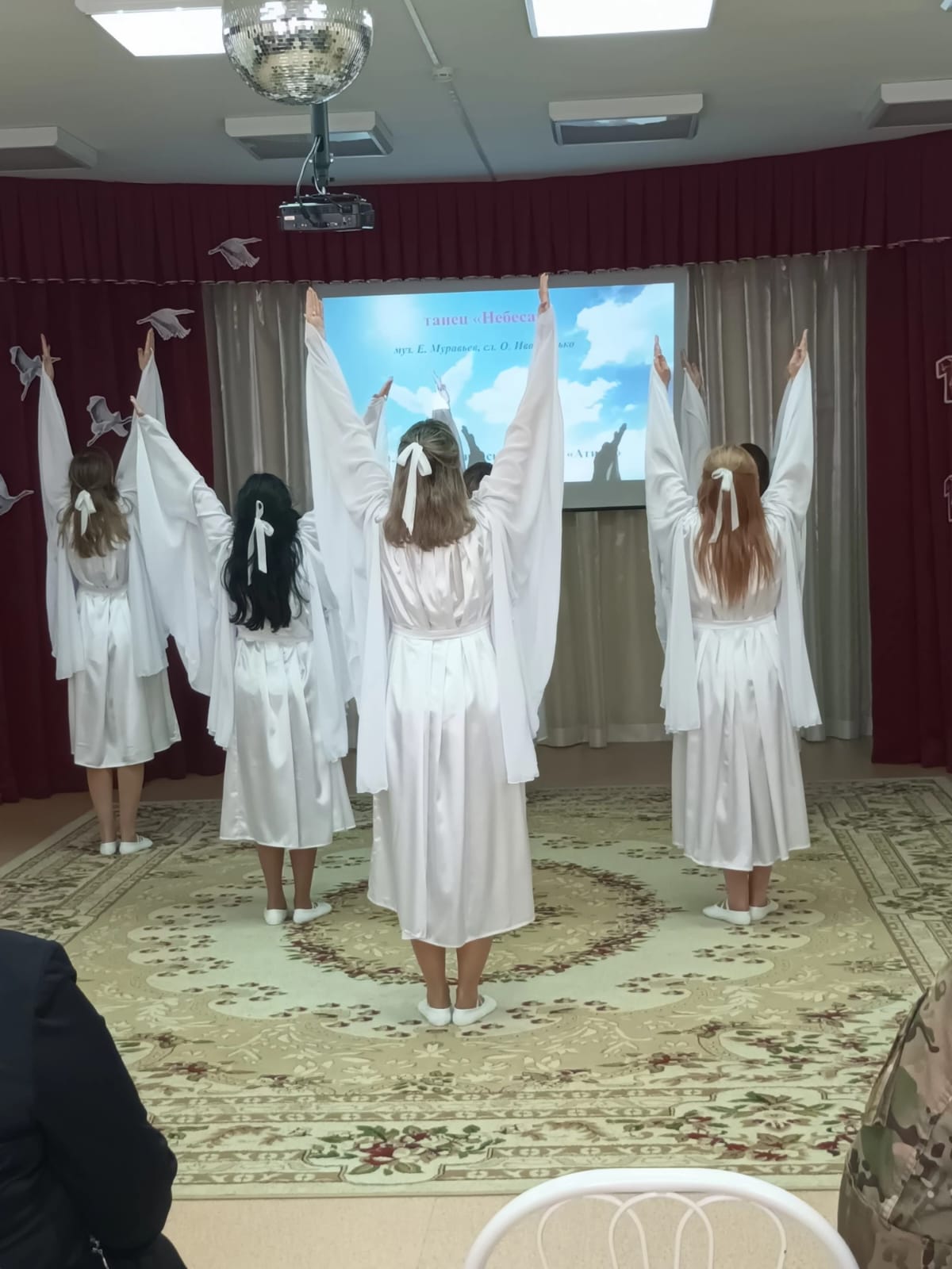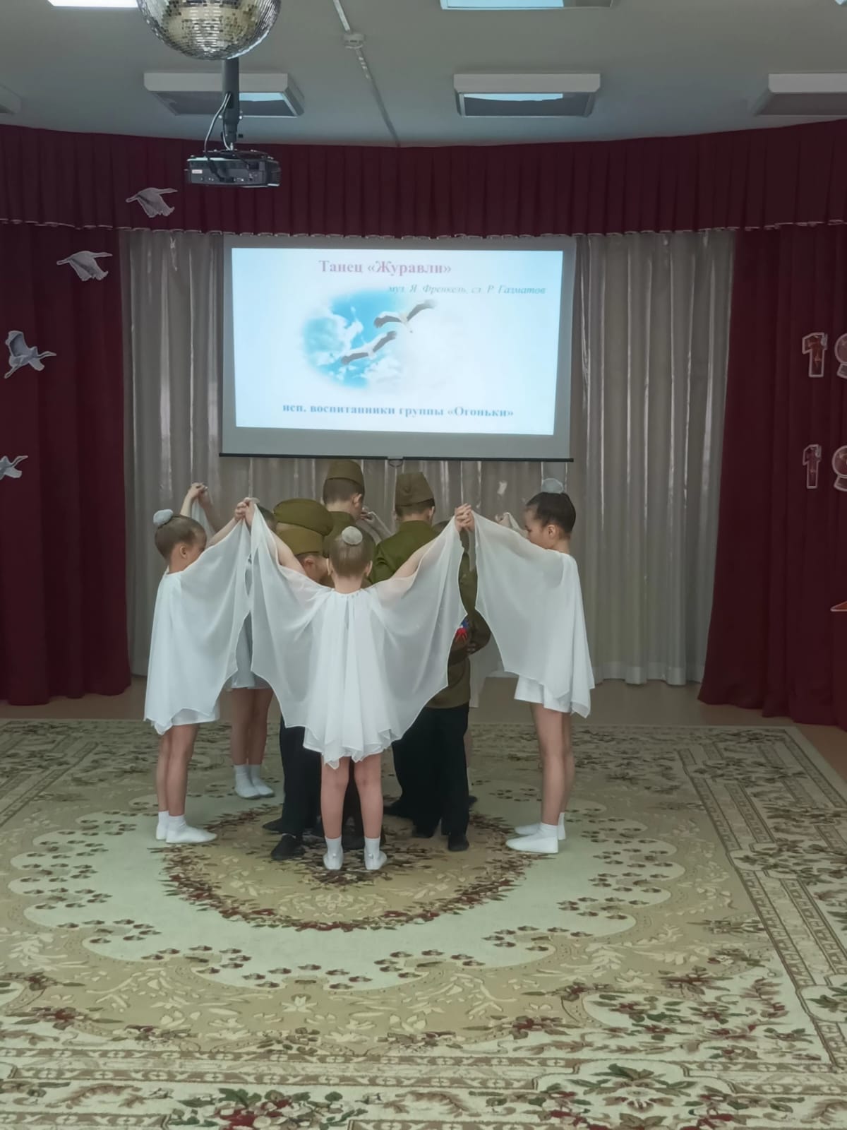 А потом были замечательные номера, выполненные с душой: хореографическая композиция «Россия», представленная воспитанниками группы «Полянка» (воспитатели Назарова И. В. и Павелкова А. В.), танец с полотнами «А закаты алые» представили пятилетние девочки из группы «Ручеек» (воспитатели Шмидт И. Н. и Пушкарева Л. А.); стихотворение «Почему в России выстрелы гремят» исполнили воспитанницы группы «Полянка» с воспитателем Назаровой И. В.; а сколько души вложили дети из группы «Огоньки» (воспитатели Метельская Е. С. и Глебова С. В.) в композицию «Журавли»! Когда на последних аккордах, уходя от нас, они повернули к зрителям свои сосредоточенные лица, как бы говоря: «Не забывайте нас!», мороз пошел по коже. Точно также на одном дыхании хореографическая группа «Атика» представила танец «Небеса»; зал просто замер, когда появились эти красивые девушки в длинных белых платьях и, выдохнув на последних звуках песни, взорвался аплодисментами. А как исполнила песню «Катюша» Ю. В. Данченко, наш музыкальный руководитель! Глядя на нее, задорно пританцовывавшую, в солдатской гимнастерке и пилотке, кажется, что перенесся в те страшные времена, и эта девчонка сейчас потащит на себе с поля боя раненого бойца.