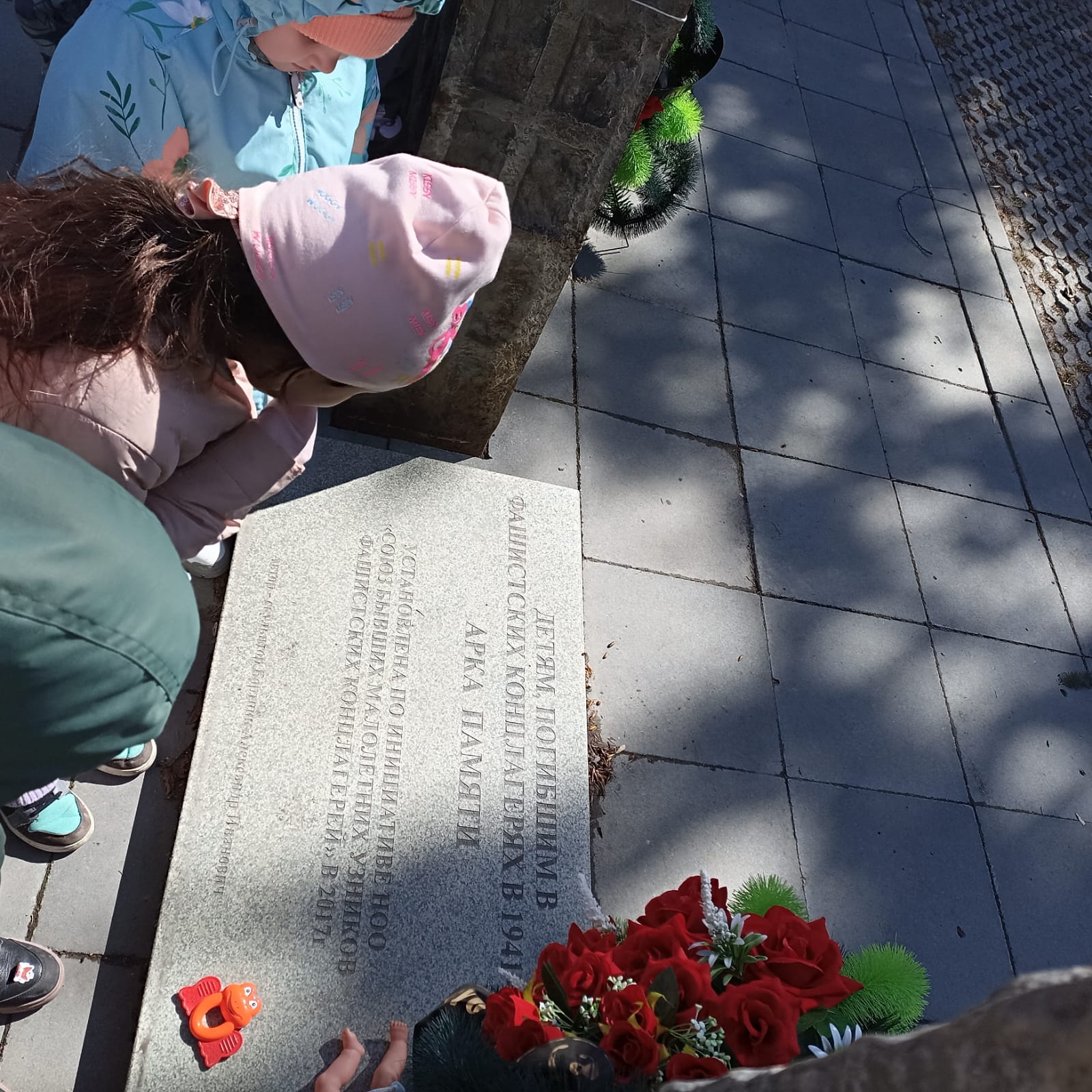 В конце экскурсии все подошли к арке памяти детей-узников фашистских концлагерей 1941-1945 годов. Сначала дети увидели около нее цветы и игрушки и весело бросились рассматривать их, но по мере рассказа гида радость с детских лиц начала пропадать, и ребята уже с очень серьезным видом дослушивали рассказ, и ведь большинство малышей не сразу отошли, а еще какое-то время стояли, будто прислушиваясь к чему-то, что очень удивило воспитателей.