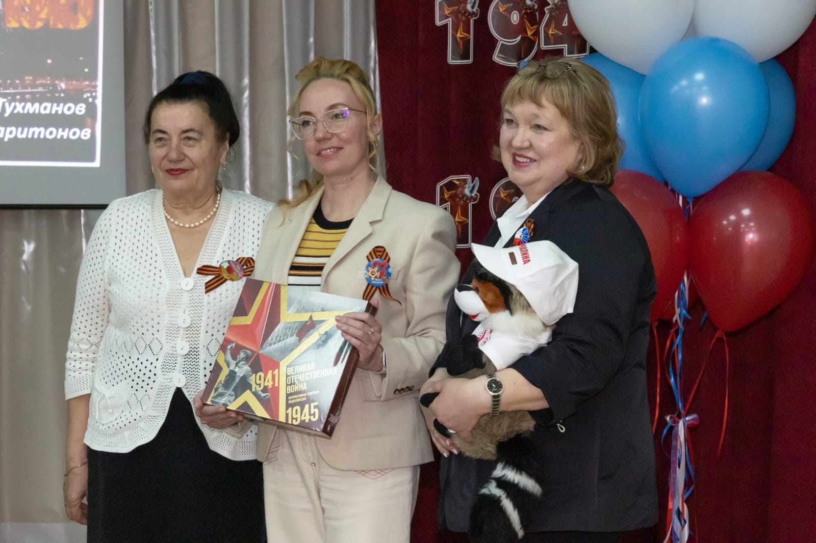 Депутаты поздравили всех присутствующих с Великим праздником. А Екатерина Николаевна подарила детскому саду улыбающегося Енота в музей и интерактивную книгу о Великой Отечественной войне.