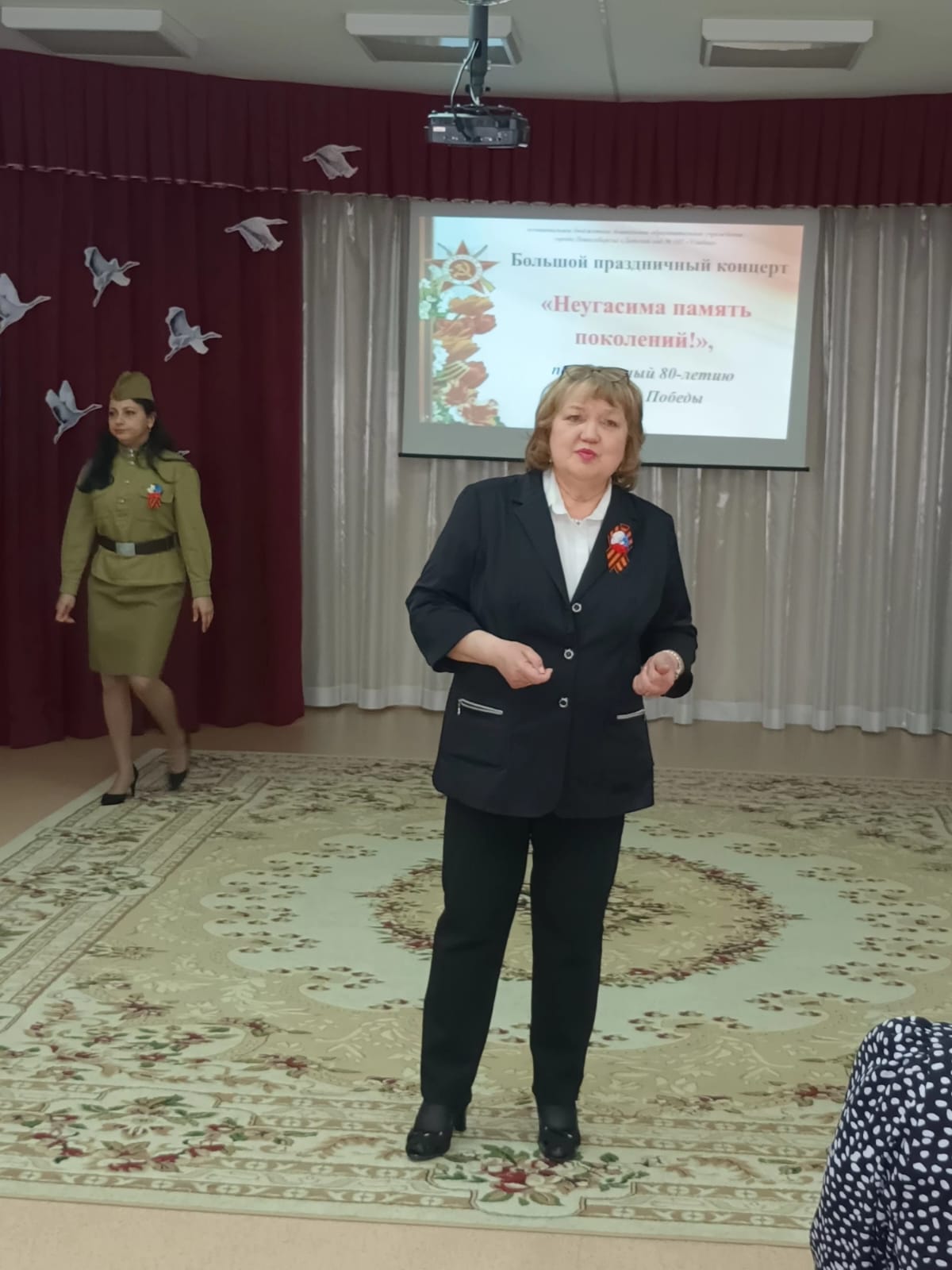И завершился наш концерт песней, без которой не обходится ни один праздник 9 Мая – «День Победы». Пели все, кто был в зале, пели самозабвенно, чувствовалось, что вот именно так рождается понимание, единение и гордость за родную страну.
