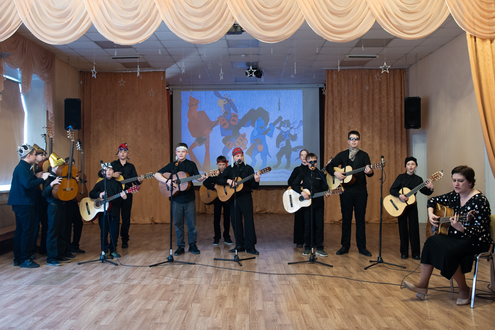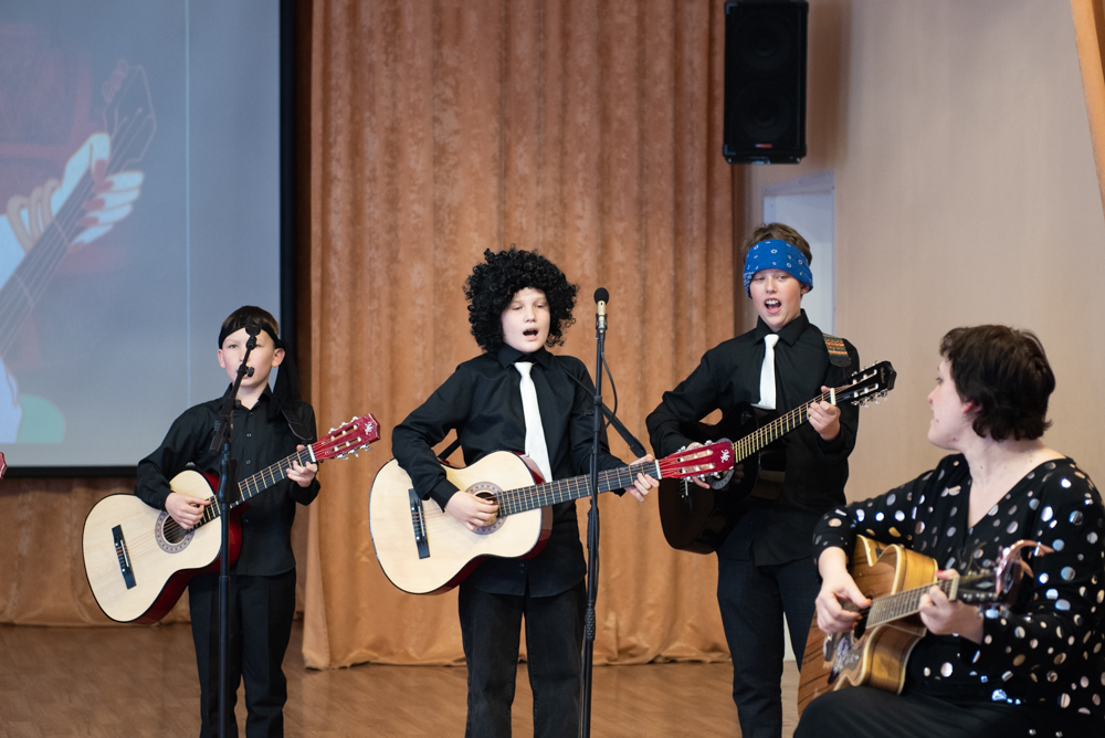 В самодельных костюмах ребята могли лучше погрузиться в образ и понять, что их пение и игра на гитаре передают характер персонажа и самой песни. Это выступление объединило множество исполнительских задач, начиная с самоорганизации и заканчивая чистотой исполнения. Родители ребят слушали знакомые мелодии, аплодировали и поддерживали юных музыкантов, ведь с начала обучения прошёл всего один учебный год. И уже все ребята неоднократно выходили на сцену. На лицах – воодушевление и понимание глубокого смысла спектакля о самоотверженной дружбе и любви. Все жизненные ценности отражены в этом небольшом, но ярком спектакле.