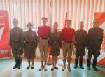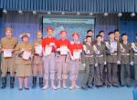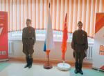 Знамённая группа в составе Юдина Матвея, Фокиной Марьяны, Осинцева Арсения с гордостью пронесла Знамя Победы перед своими товарищами и заступила в почётный караул.