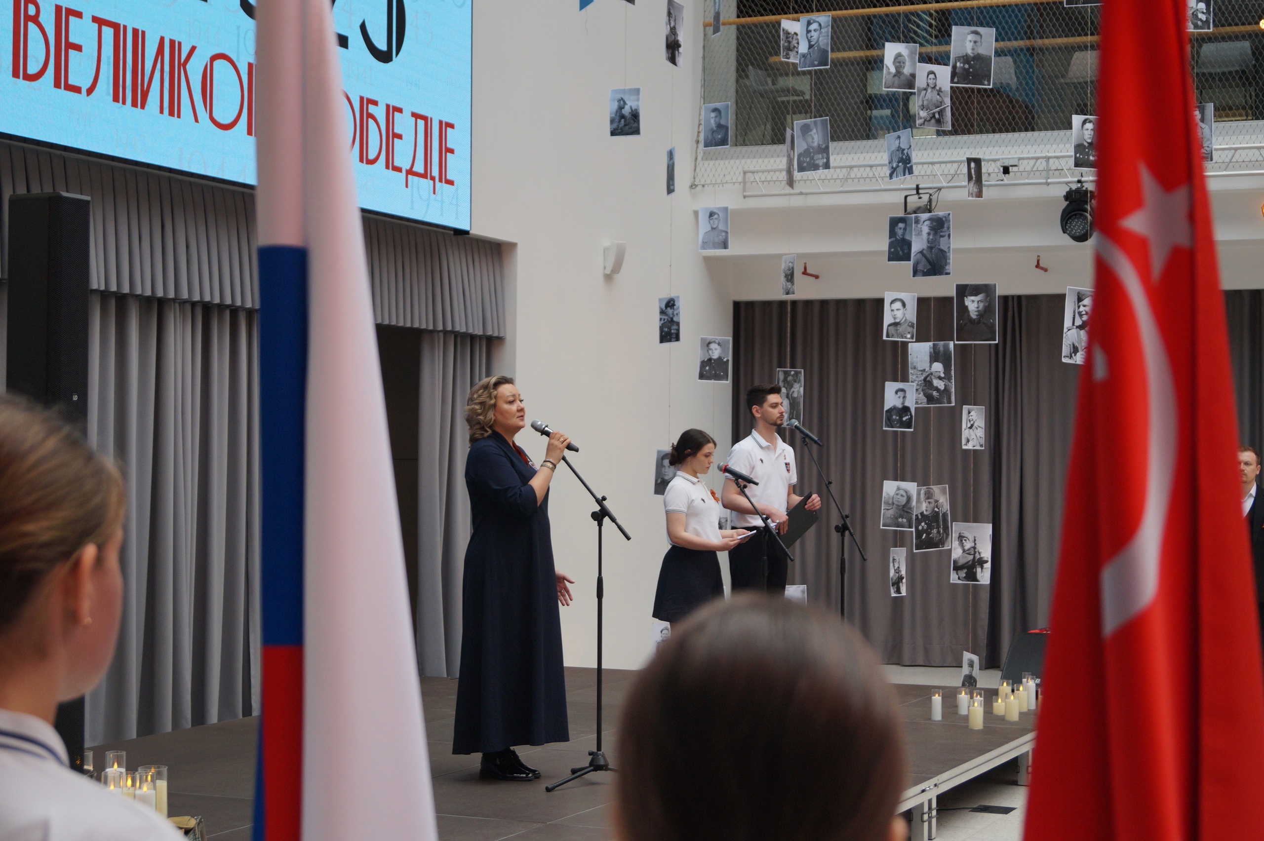 В атриуме МОАУ СОШ № 220 имени К. Д. Ушинского прошла акция «Бессмертный полк», организованная силами наших замечательных учеников и преподавателей.