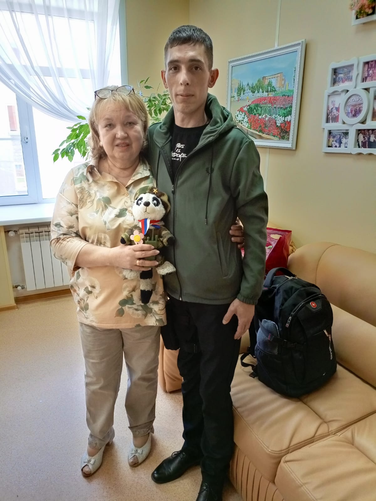 И вот сегодня это случилось! Мы очень волновались. Но все волнение пропало, как только он появился: высоченный худенький скромный парень с детской улыбкой на лице! Кажется, он волновался не меньше нашего! В глазах нет-нет да и вспыхивали искорки слезинок! Мы посвятили Анатолию небольшой концерт, между номерами которого выходили дети и воспитатели и дарили ему свои подарочки: группа «Сказка» подарила енота (антистресс), полотенце с енотом и пазлы, отметив, что все это ему пригодится в больнице и поможет быстрее выздороветь, группа «Радуга» – фотоколлаж в рамке, «Огоньки» – портрет с надписью «Толик, мы тебя любим» и многое другое.