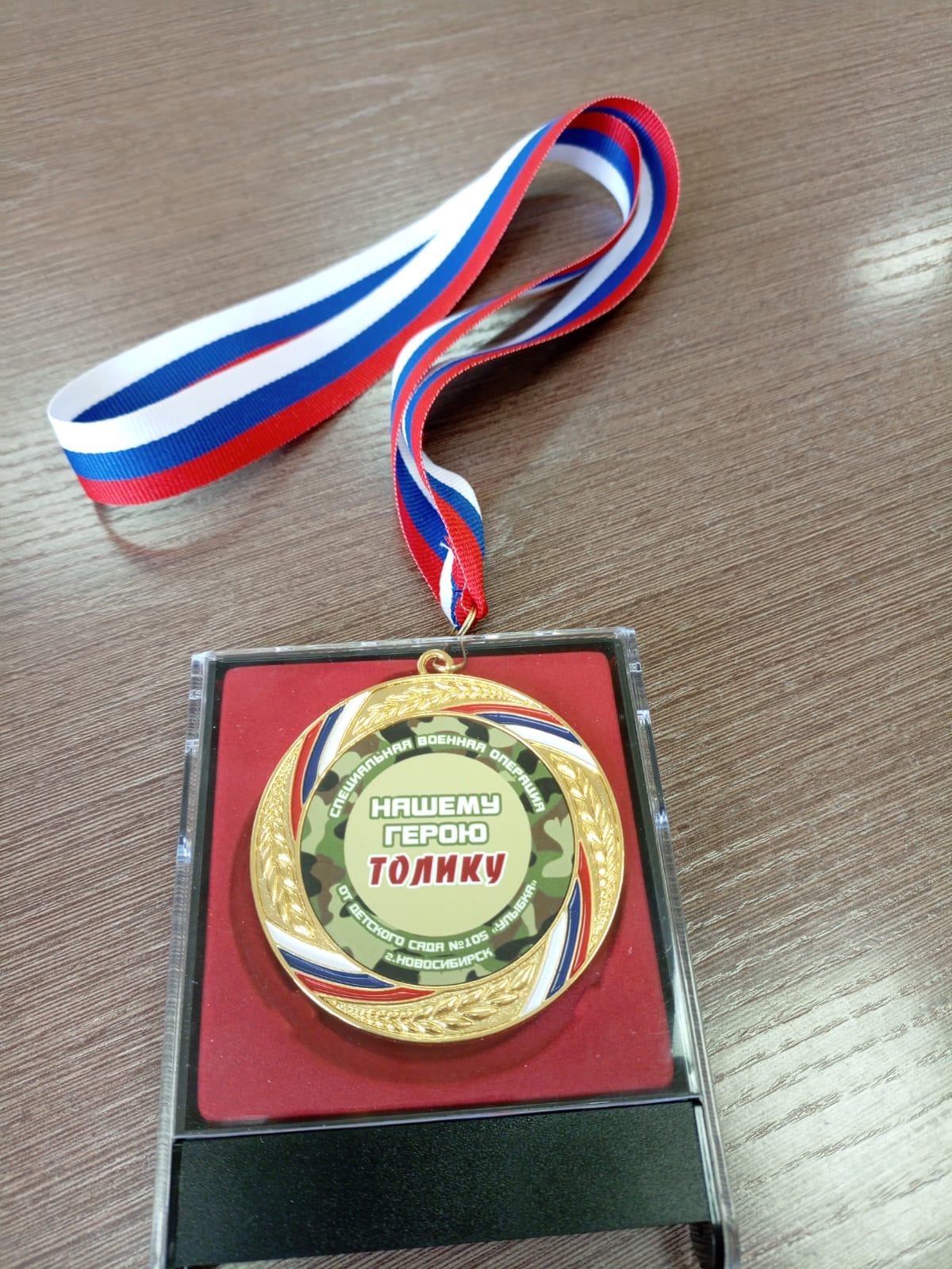 Анатолий был награжден государственной медалью «За освобождение Мариуполя», но детский сад решил, что этого мало, поэтому мы вручили ему медаль с незамысловатой надписью «Нашему герою Толику», а вручить ее доверили Яночке, воспитаннице группы «Полянка», что очень тронуло Анатолия. Еще мы исполнили наш гимн волонтеров-дошкольников, который как-то особенно прозвучал в присутствии настоящего участника СВО.
