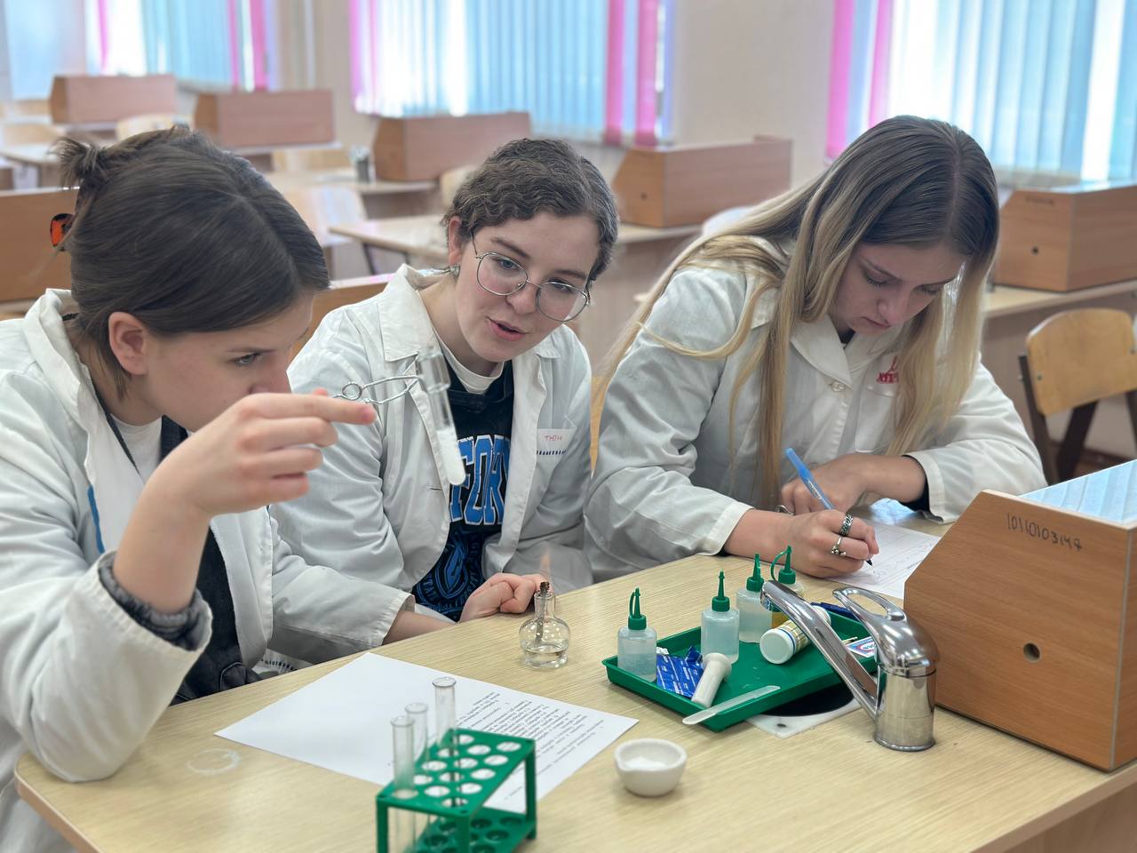 На станции «Фармакология» десятиклассникам предлагалось стать лаборантами и, руководствуясь инструкцией по проведению химического опыта, определить наличие салициловой кислоты в лекарственных препаратах.