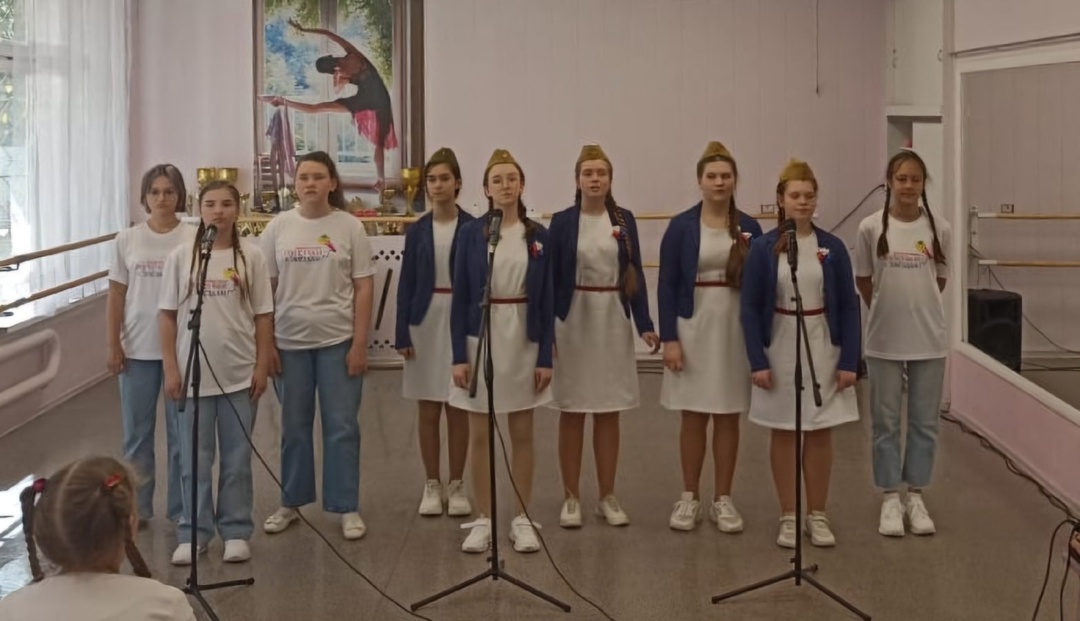 Накануне 80-ой годовщины Великой Победы ребята подарили зрителям волнующие моменты, воплотив в песнях образы отважного трубача, героической медсестры, бравого солдата, молодого лейтенанта из приграничного Бреста. Дети пели о войне, сражениях, героизме. Но больше – о мире, чистом небе, ярком солнце, которые так нужны всем нам для счастливой жизни!