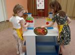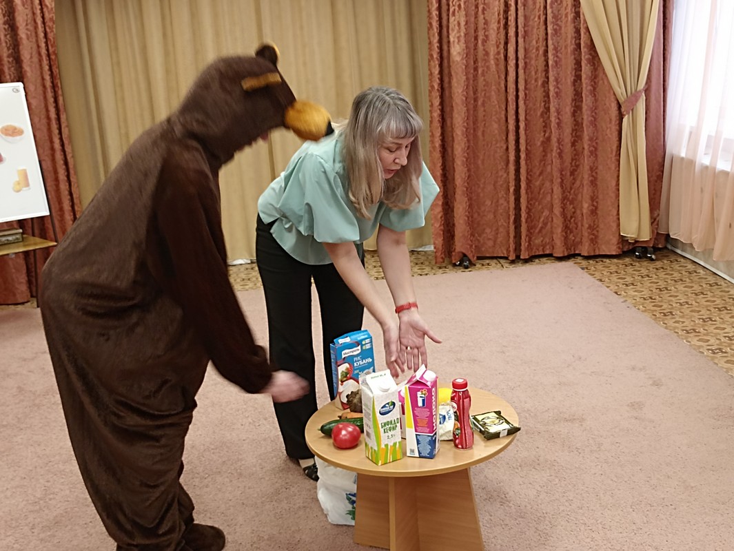 Конечно, медведь был очень голоден, и ребята с удовольствием согласились помочь ему в выборе продуктов и приготовлении разных блюд. В доставленных продуктах дошколята без труда определили вредные продукты и исключили их из рациона. Полезные продукты дошкольники могли легко классифицировать, называть правильно приготовленные блюда из фруктов и овощей, а для медведя законсервировали фрукты и овощи, приготовили любимый салат и тыквенную кашу.