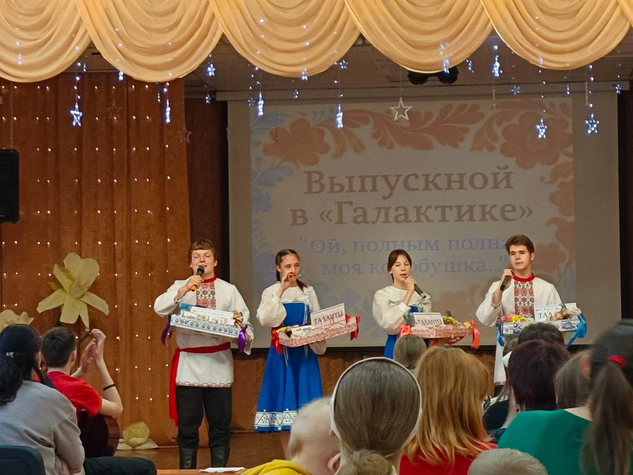 В Центре внешкольной работы «Галактика» состоялся выпускной вечер, посвященный завершению учебы 72 талантливых ребят с разными творческими увлечениями. Главной особенностью мероприятия стала символичная коробушка, наполненная работами учеников, отражающими приобретённые ими знания и умения.
