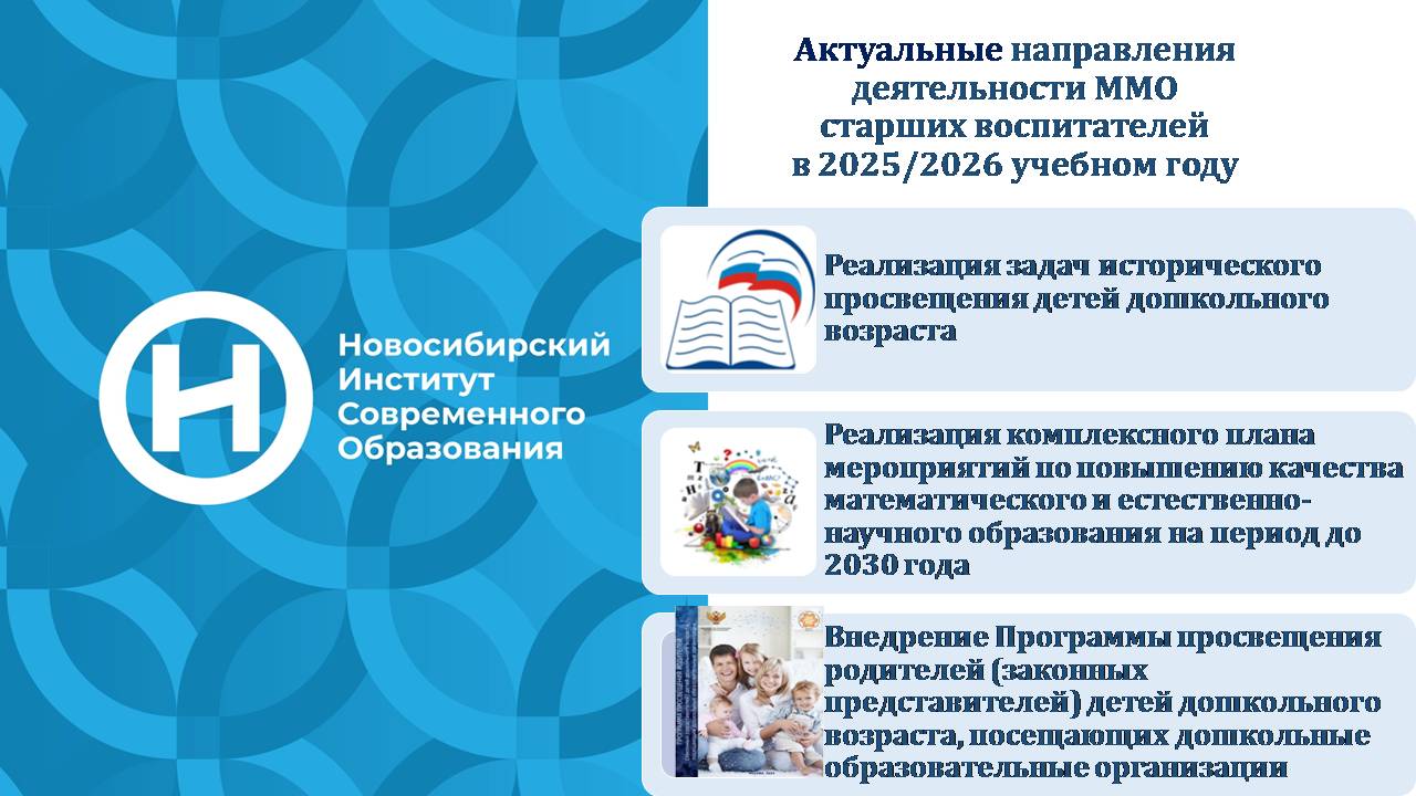 На основе стратегических ориентиров на 2025/2026 год по материалам стратегической сессии педагоги наметили план работы, включающий серию мероприятий по актуальным направлениям методической работы в системе дошкольного образования на 2025/2026 учебный год: реализация задач исторического просвещения детей дошкольного возраста, комплексного плана мероприятий по повышению качества математического и естественно-научного образования на период до 2030 года; внедрение Программы просвещения родителей (законных представителей) детей дошкольного возраста, посещающих дошкольные образовательные организации. Деятельность работы ММО представлена на сайте МАУ ДПО «НИСО».