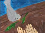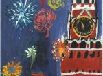 На выставке показаны моменты победы: салют на Красной площади, Спасская башня, голуби, символизирующие мир на Земле. Ребята научились рисовать салют: акварелью, масляной и сухой пастелью, гуашью, использовали технику «граттаж».