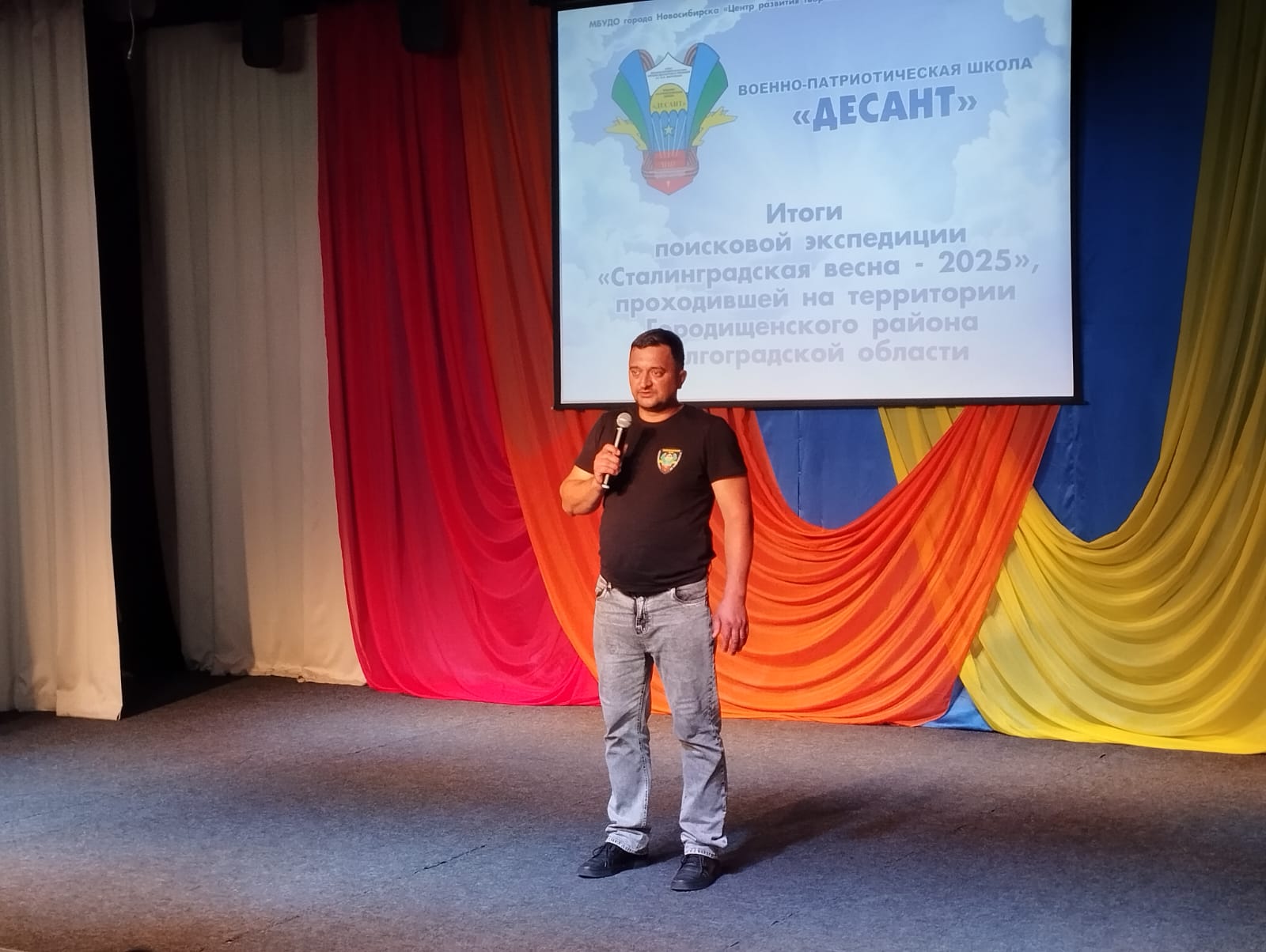 В Центре развития творчества детей и юношества «Заельцовский» состоялась встреча по итогам участия отряда Военно-патриотической школы «Десант» в поисковой экспедиции в рамках Всероссийской акции «Вахта Памяти – 2025». Акция, посвященная 80-летию Победы в Великой Отечественной войне и организованная Поисковым движением России, объединила около 400 человек, представлявших 60 поисковых отрядов и объединений РФ. Вахта Памяти «Сталинградская весна – 2025» проходила в Городнищенском районе Волгоградской области. В ходе раскопок общими усилиями поисковики обнаружили останки 138 бойцов и командиров Красной армии.