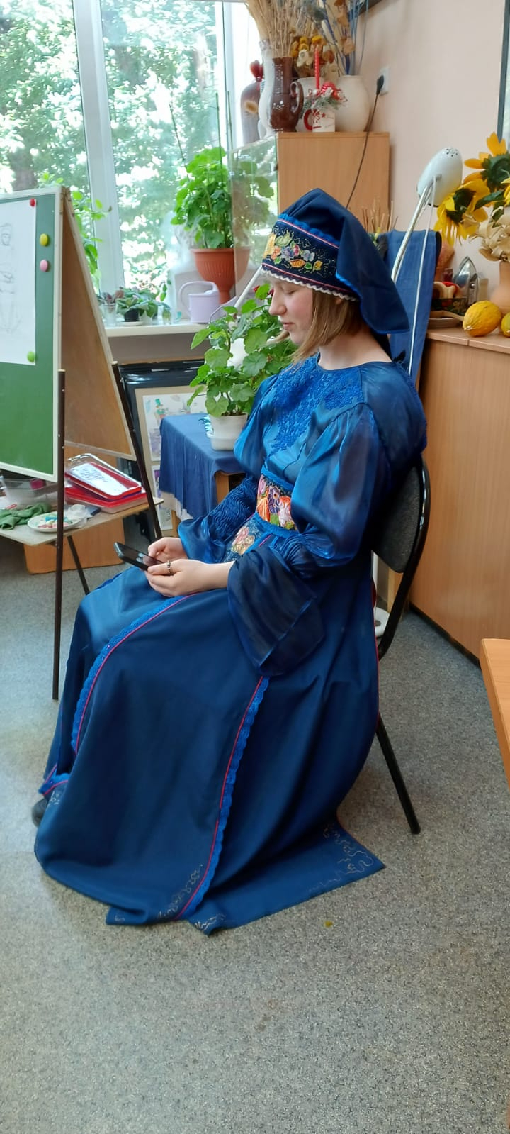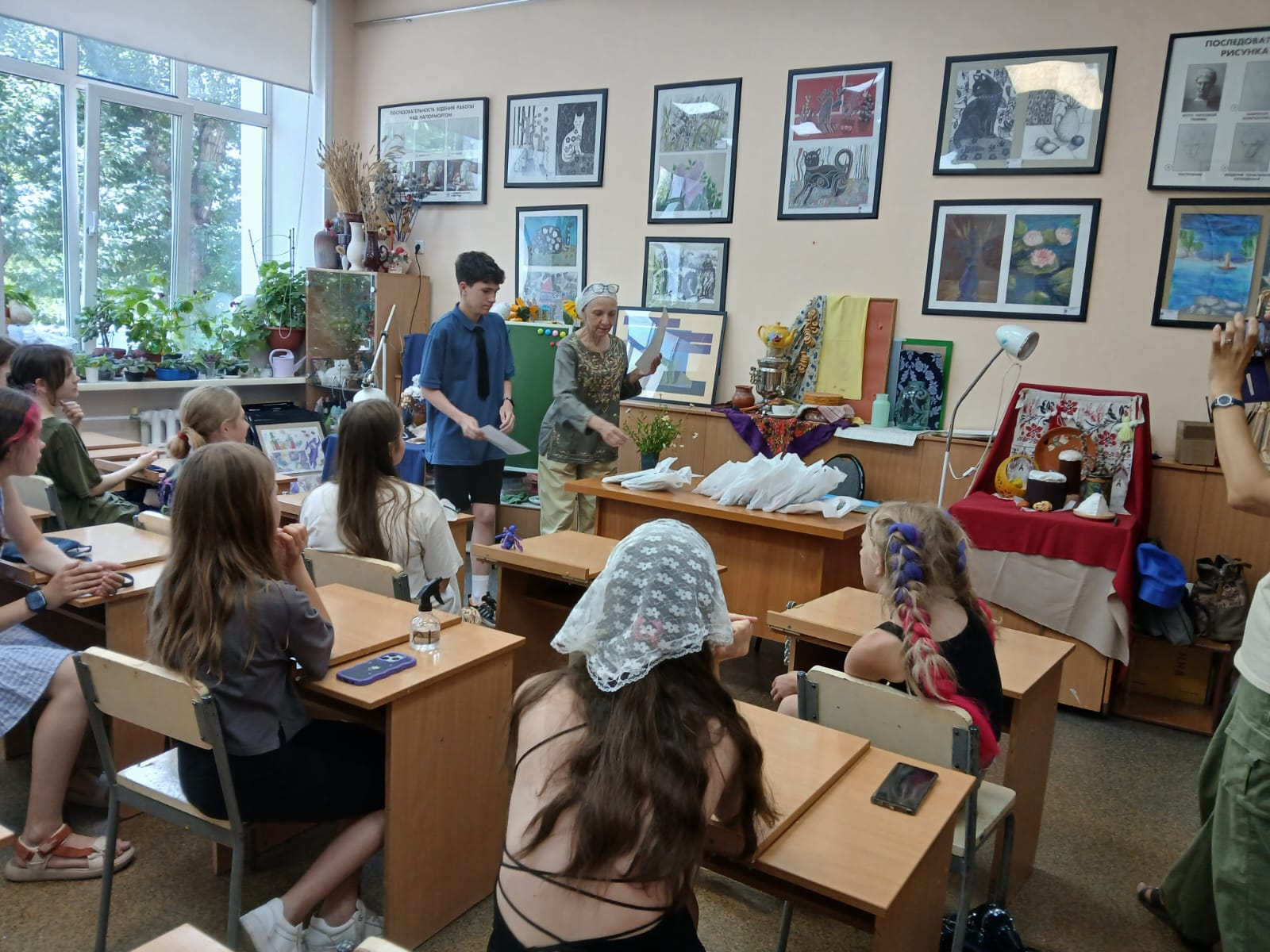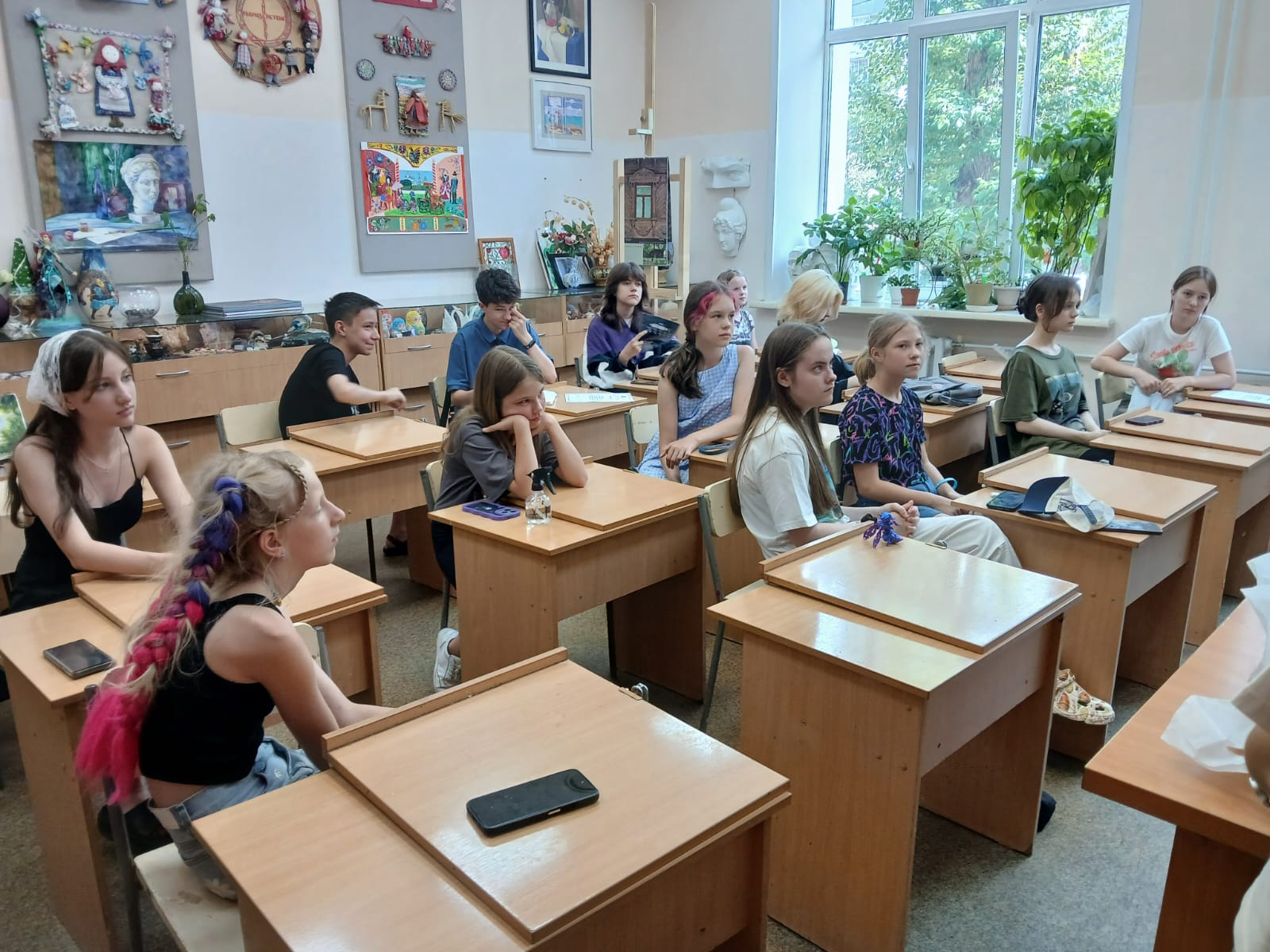 Завершающим занятием пленэра стало рисование с натуры женской фигуры в сценическом костюме. После этого педагоги, руководители профильной смены, подвели итоги и организовали просмотр творческих работ обучающихся за все время работы пленэра.