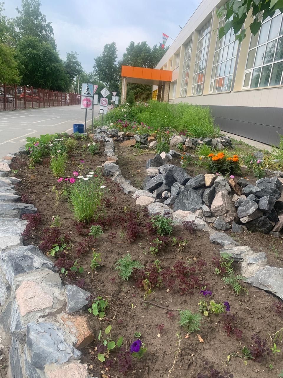 В июне на школьном участке работали ученики 8 классов. Под руководством учителя географии Ирины Александровны Филоновой они высаживали деревья и цветы, пололи и поливали клумбы. Благодаря ребятам школьный двор стал цветущим садом с тенистыми аллеями и яркими клумбами.