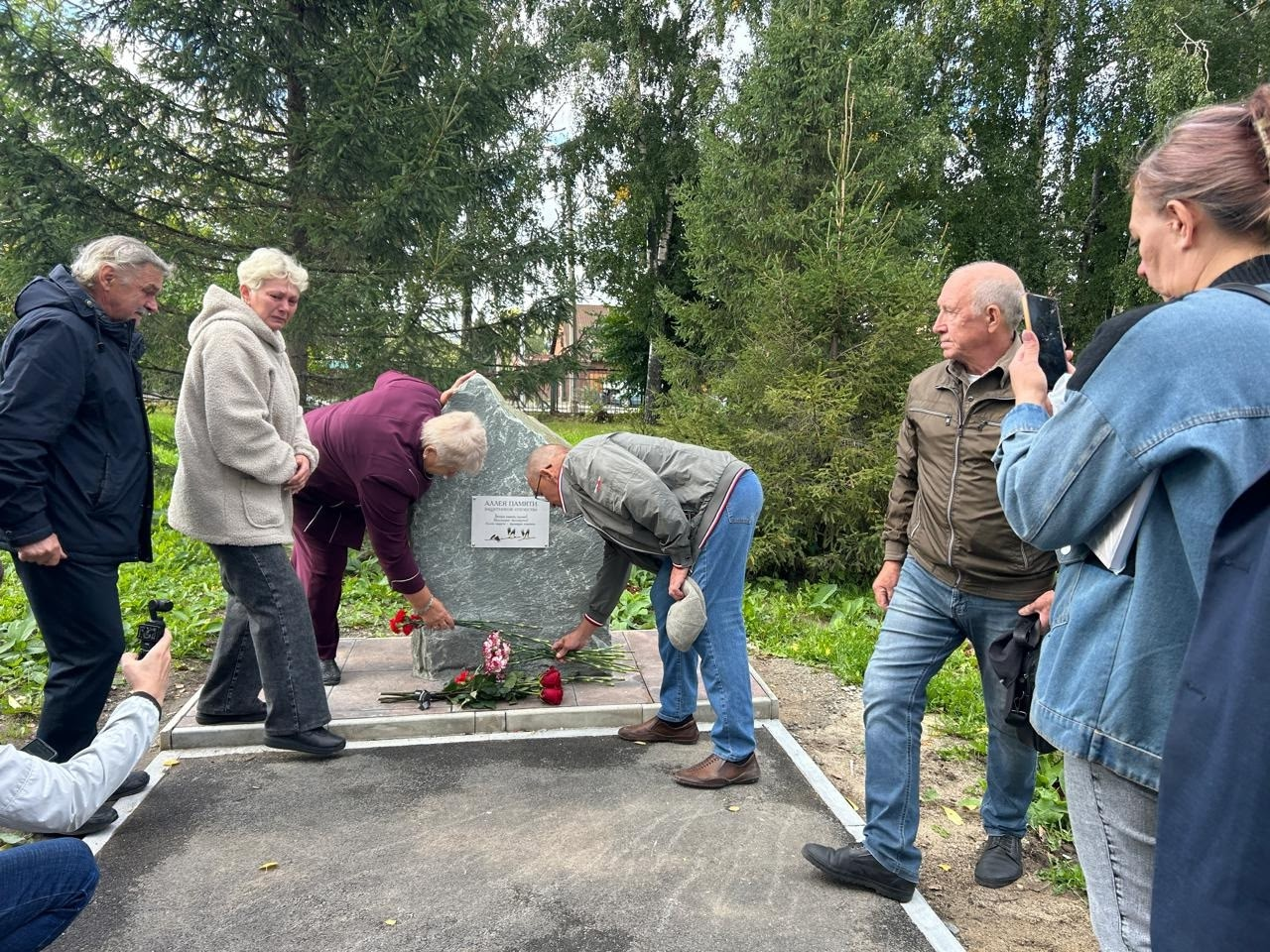 На торжественном открытии Аллеи памяти присутствовали главный специалист отдела образования города Новосибирска Анна Владимировна Суняева, заместитель председателя ветеранской организации Лидия Васильевна Старых, а также Константин Костяной — обладатель Крапового берета с позывным «Молот».