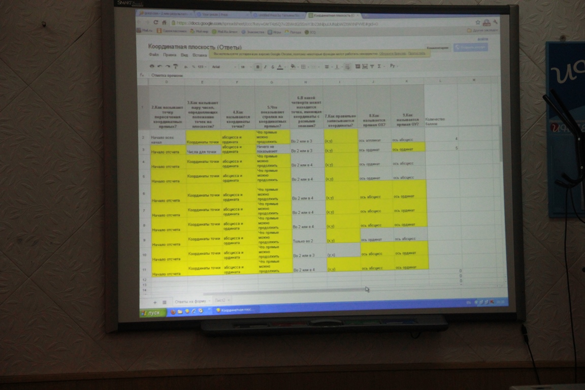 В МБОУ СОШ № 167 в рамках работы базовой площадки по активному продвижению и использованию сетевых сервисов Веб 2.0 состоялся открытый урок «Применение облачных технологий на уроках математики. Координатная плоскость. 6 класс». Проводила урок Татьяна Александровна Попырина, учитель математики школы № 167. На уроке присутствовало 7 специалистов муниципальной системы образования.