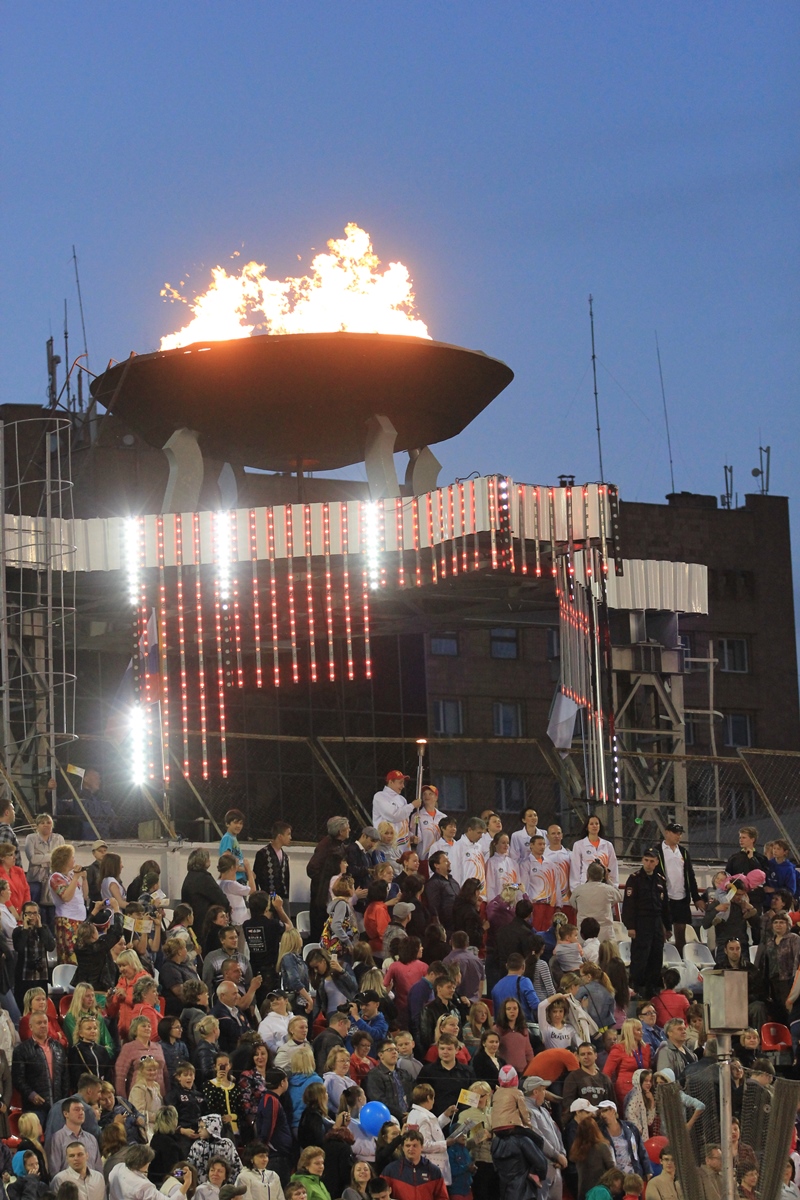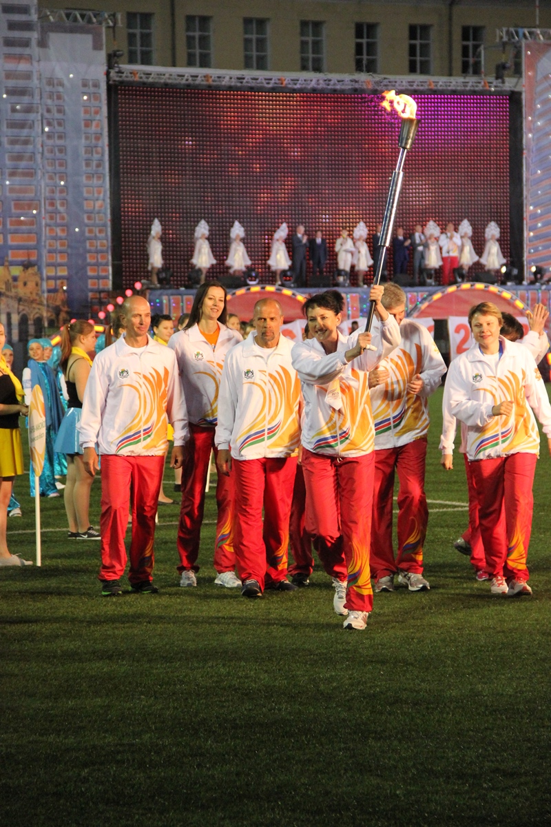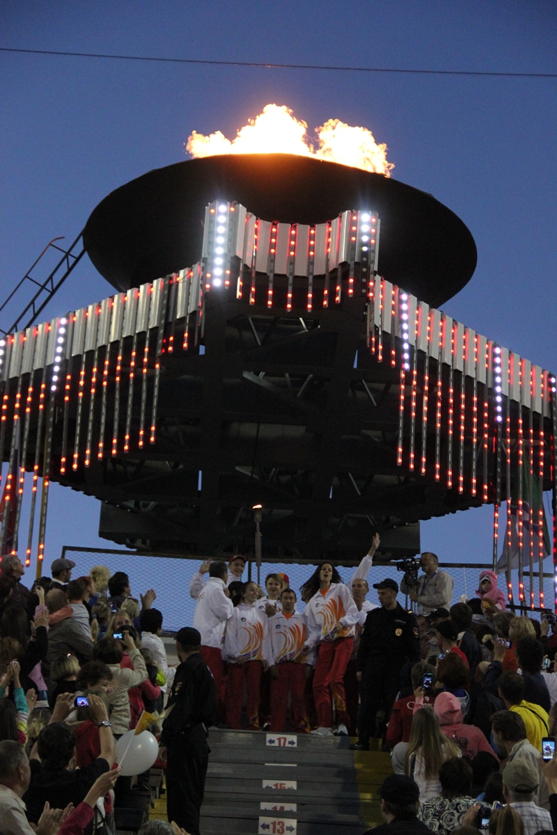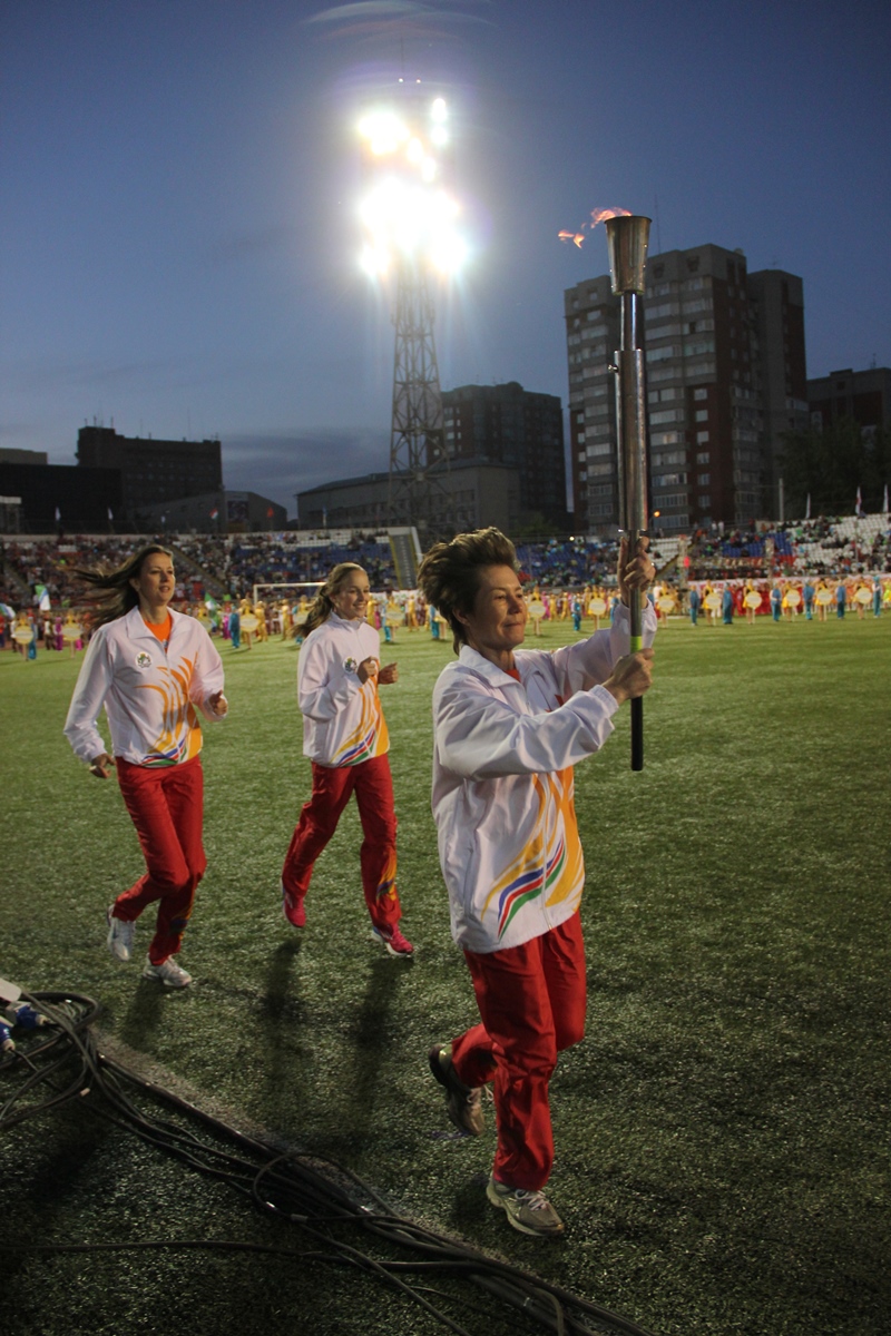 Торжественная церемония началась c факельной эстафеты, которая стартовала от монумента Александру Покрышкину и финишировала на стадионе «Спартак». Факелоносцами стали победители Олимпийских игр: Виктор Маркин, Ирина Минх, Лина Чирязова, Сергей Тарасов, Анна Богалий, Евгений Подгорный, Александр Карелин, Андрей Перлов, губернатор Новосибирской области Василий Юрченко, мэр Новосибирска Владимир Городецкий, председатель Законодательного Собрания НСО Иван Мороз, заместитель полномочного представителя Президента Российской Федерации в СФО Вадим Гончаров, начальник управления олимпийского образования Олимпийского комитета России Александр Контанистов, а также победители Сибириад Надежда Юхневич и Алина Болбат.