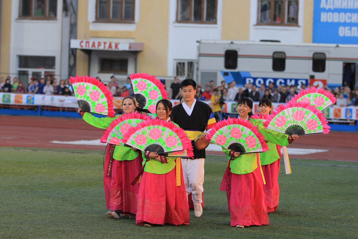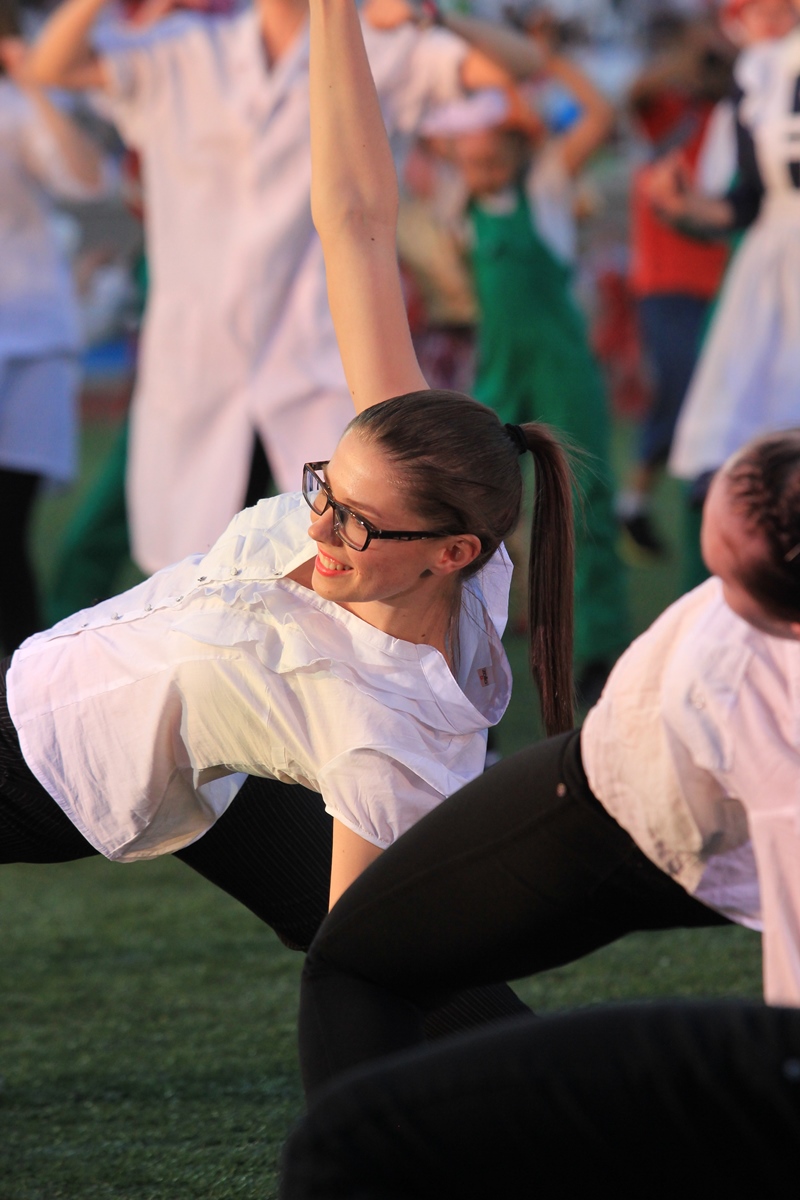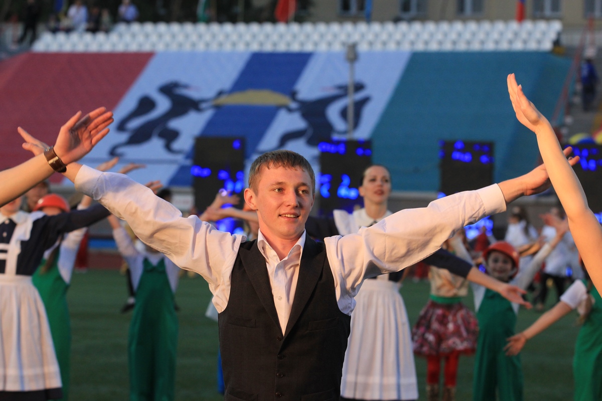 Когда на глазах тысяч зрителей вспыхнул огонь сибирского троеборья, трибуны загудели и запустили живую волну. Все присутствующие стали свидетелями грандиозного шоу, погружающего в историю Новосибирска. Более 20 танцевальных коллективов города отобразили жизнь сибиряков от XIX века до наших дней, единение различных национальных культур, а также рассказали гостям о главных достопримечательностях города на Оби. Новосибирск по праву гордится Театром оперы и балета, Академгородком – научным центром России и Новосибирским зоопарком – крупнейшим за Уралом. Примечательно, что церемония открытия и сами Игры проводятся во время празднования юбилея сибирской столицы. Около тысячи артистов, перетекая живой рекой, выстроились в символичную для Новосибирска цифру 120.