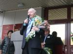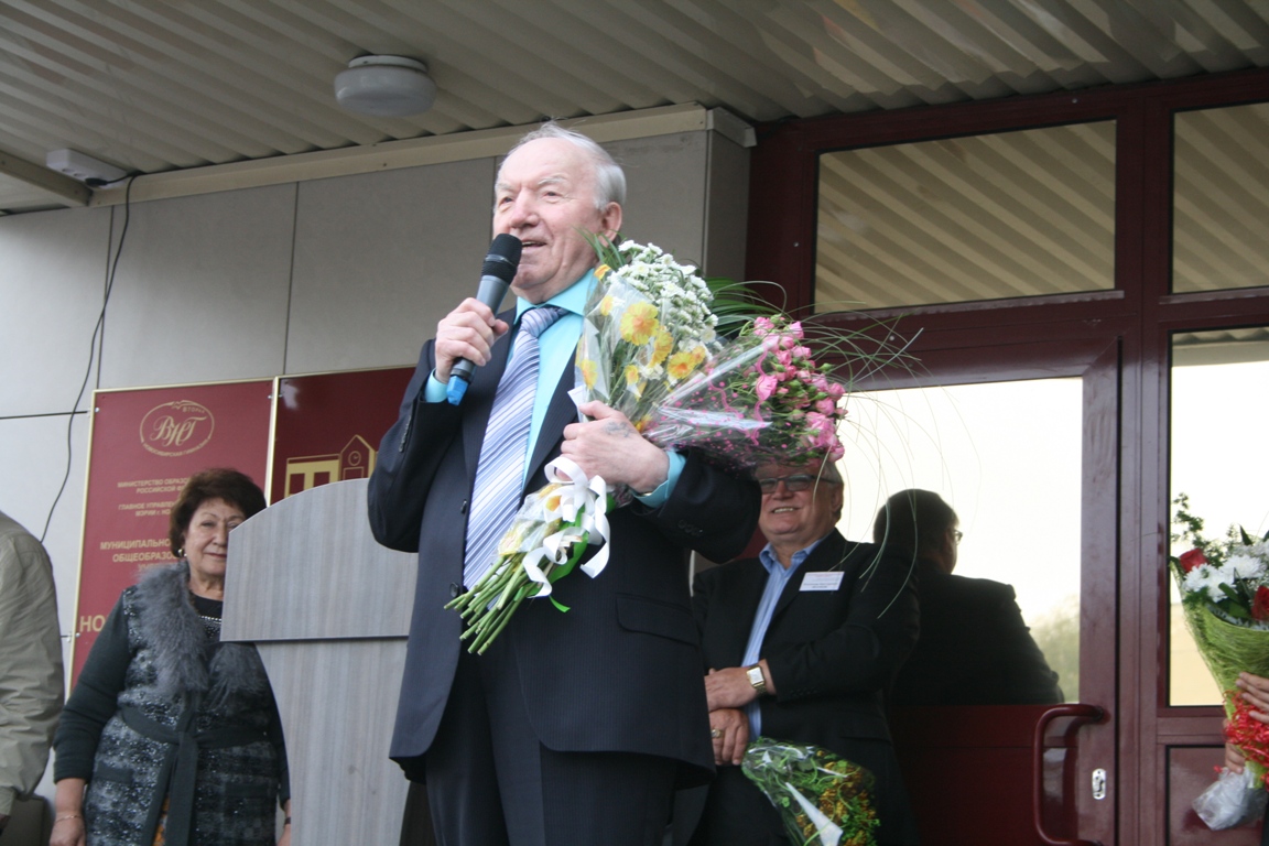 Народный артист России, актер Новосибирского театра музыкальной комедии, Почетный житель города Иван Андреевич Ромашко в качестве напутствия ребятам прочитал стихотворение об учителе.