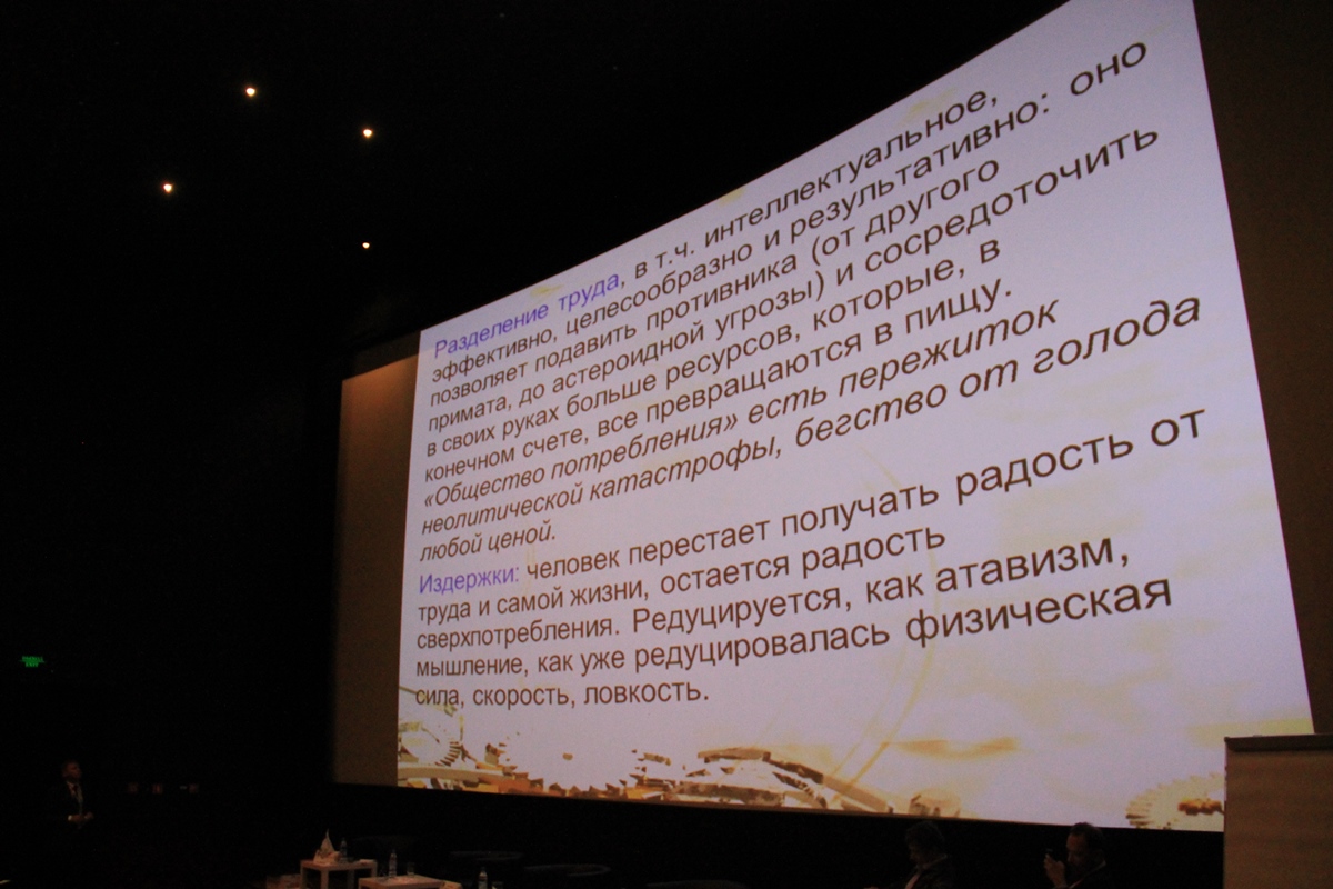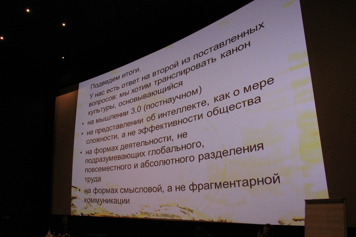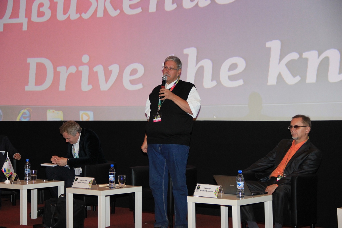 Свою противоположную предыдущей концепцию на развитие сферы образования высказал в своем выступлении Сергей Переслегин, литературный критик и публицист, исследователь фантастики. По его мнению, в ближайшие десять, двадцать и сто лет в сфере образования не произойдет никаких существенных изменений: «Суть образования – это межпоколенческая трансляция, и вообще не имеет значения – через школу, через отдельно взятого учителя, через книгу, через интернет или любой другой способ. На мой взгляд, суть в том, что в процессе вашего образования кто-то знающий и обладающий информацией более структурированной передает вам свое личное умение связывать между собой разные факты. То, что все можно найти в интернете – легенда, которую создало наше поколение: люди, которые много чего знают, многое могут найти в интернете, люди, которые ничего не знают – ничего в нем найти не могут.