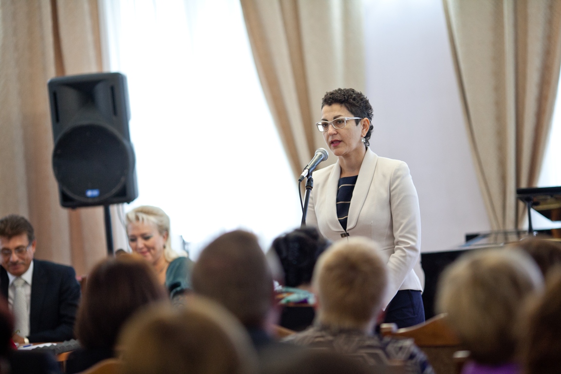 Вступительное слово было предоставлено начальнику отдела профессионального развития педагогических кадров Министерства образования, науки и инновационной политики Новосибирской области Марии Наильевне Жафяровой, которая, поддержав инициативу педагогов, обратилась к присутствующим с пожеланиями успеха и выразила готовность к дальнейшему сотрудничеству.