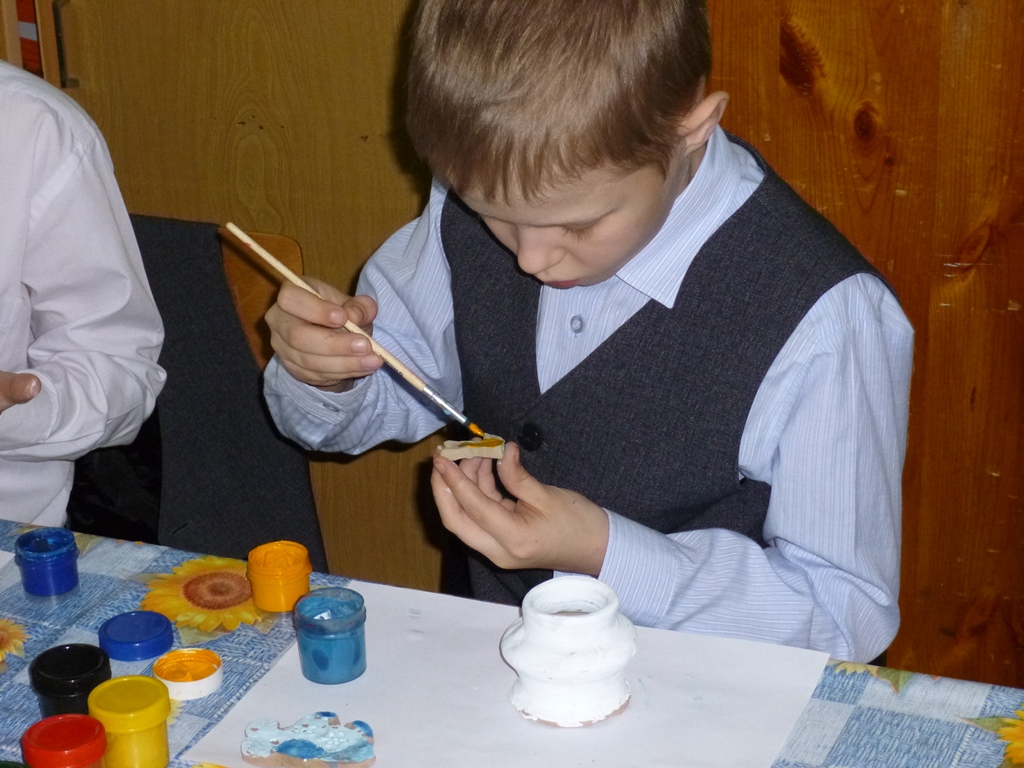 Поработав с глиной, отправляя свои изделия сушиться, а позже расписывая свои вазочки, тарелочки, кувшинчики, дети планировали их дальнейшую судьбу. Кто-то решил оставить поделку себе на память, кто-то подумывает сделать подарок своим родным.