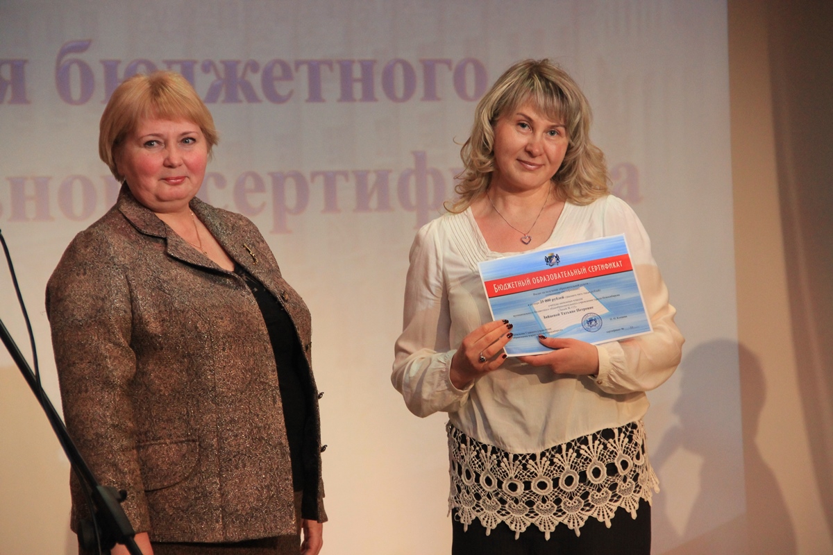 Сертификат дает право на получение образовательной услуги (повышение квалификации) в учреждениях высшего и дополнительного профессионального образования, подтверждая право его обладателя на финансирование в размере 25 тысяч рублей за счет средств бюджета города, и действителен в течение 2014 года. В этом году образовательным сертификатом смогут воспользоваться 45 специалистов. На эти цели из бюджета города выделено 1 млн 125 тысяч рублей.