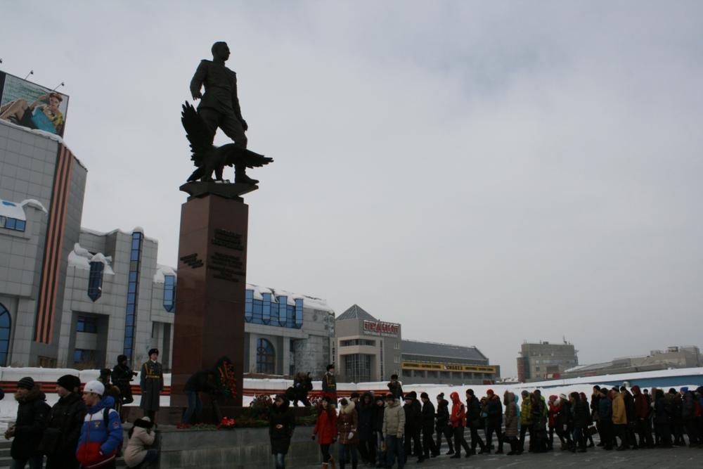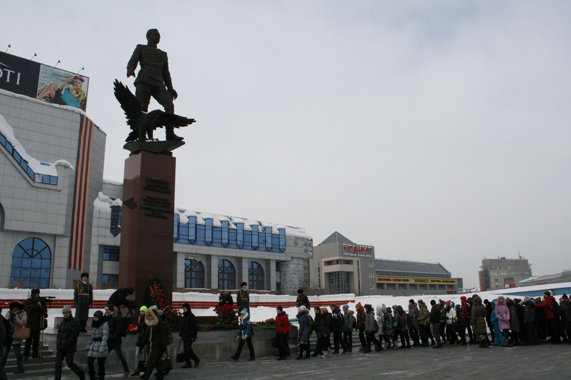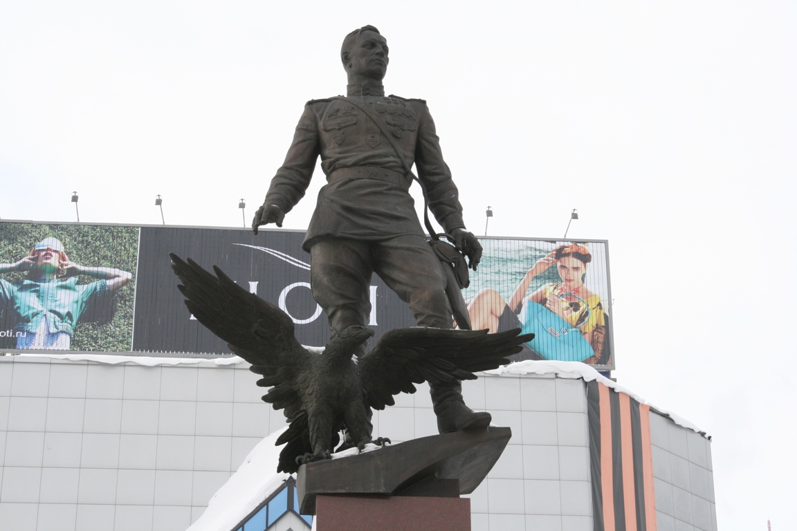 Торжественное мероприятие состоялось и у памятника Александру Покрышкину на площади им. Карла Маркса.