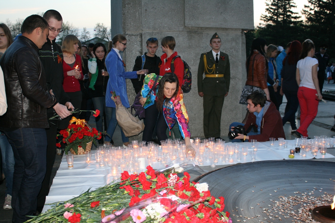 Традиционно перед праздником Великой Победы Управление молодежной политики НСО, Дом молодежи НСО и Комитет по делам молодежи мэрии Новосибирска проводят акцию «Свеча Памяти».