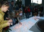 Шествие трех колонн участников акции, с зажженными свечами в руках, двинулось от улицы Станиславского к Вечному огню. Подойдя к Монументу, они почтили минутой молчания память героев, отдавших жизни на войне за мирное небо над нашей головой. Затем, каждый по очереди, поставил свою свечу к чаше с Вечным огнем.