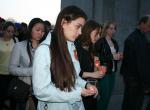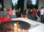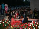 Вечером, 8 мая, на Монументе Славы было многолюдно. Сюда пришли не только школьники и студенты, но и ветераны, родители с маленькими детьми. И почти у каждого на груди красовалась георгиевская ленточка, а в руках горела свеча. Песни военных лет, звучащие над площадью, создавали праздничную атмосферу.