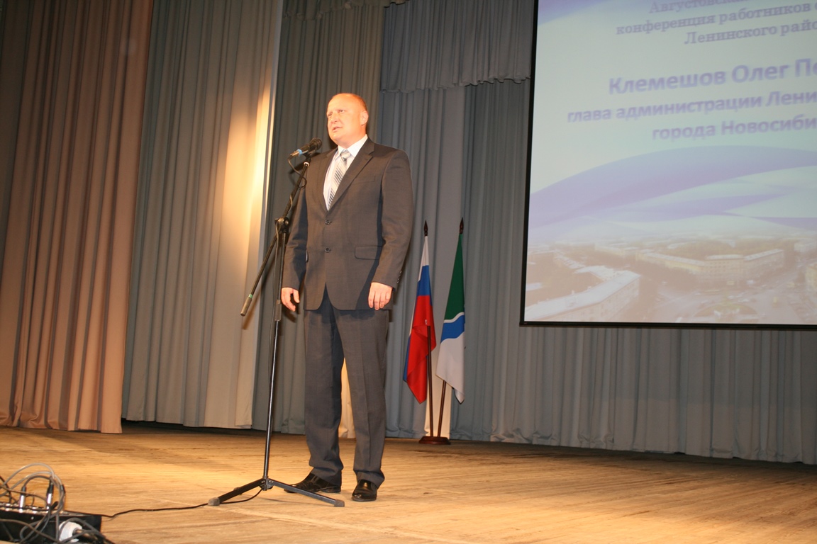 С приветственным словом к педагогам обратился глава администрации Ленинского района Олег Петрович Клемешов: