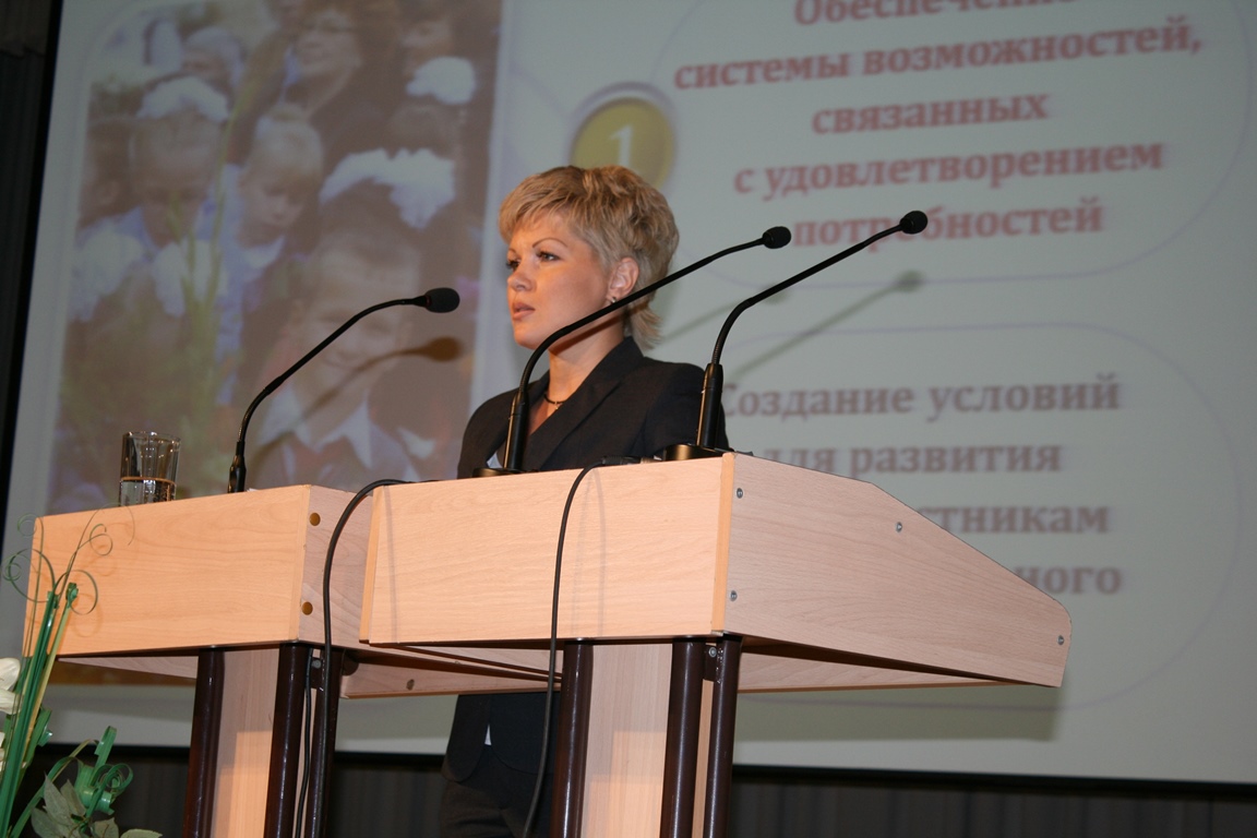 Она отметила инновации в проведении конференции – коллективные способы выступления, своего рода диалоговые площадки, когда на сцене одновременно выступало по два-три педагога от разных учреждений, ведя между собой диалог.