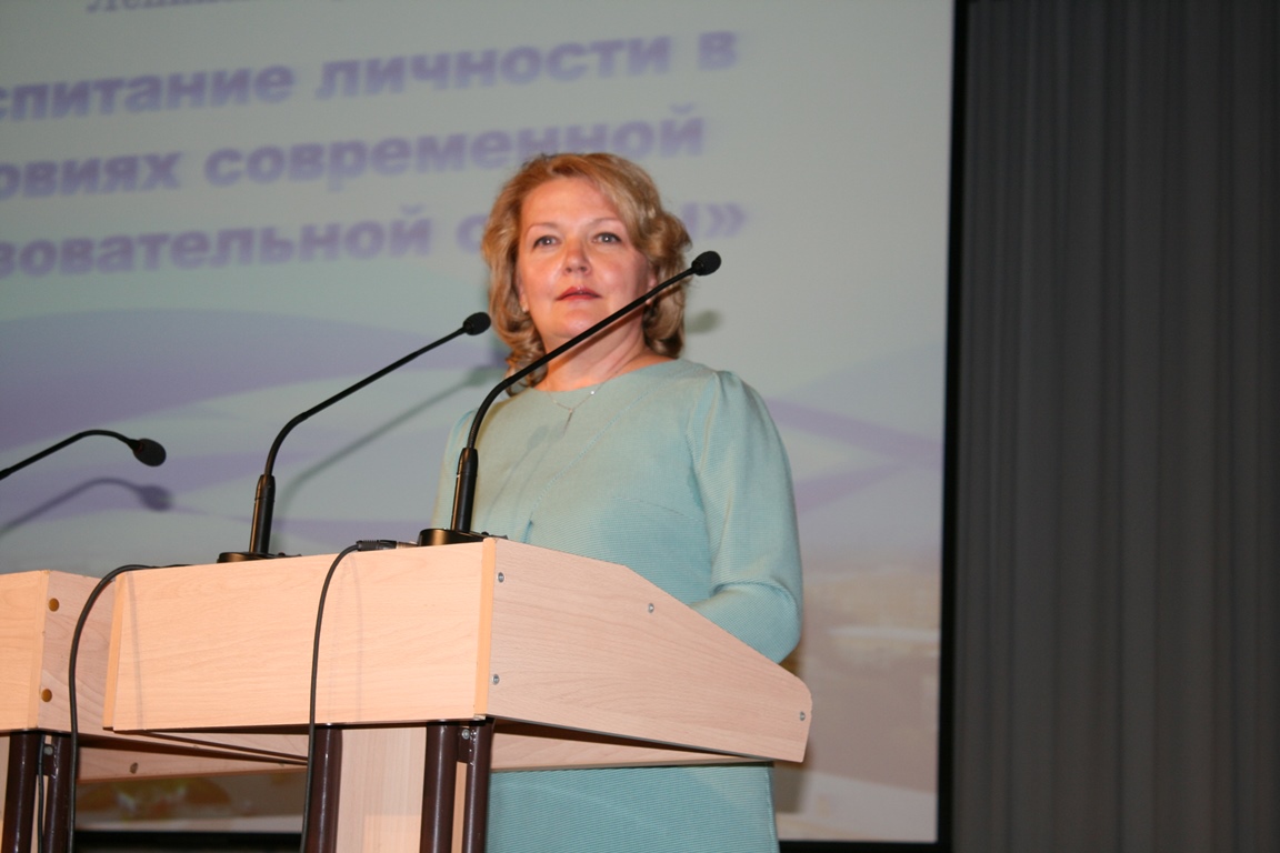 Тема основного доклада, который подготовила доктор педагогических наук, профессор, заведующая кафедрой начального образования НИПКиПРО Молокова Анна Викторовна, называлась «Воспитание личности – государственная задача современного образования».
