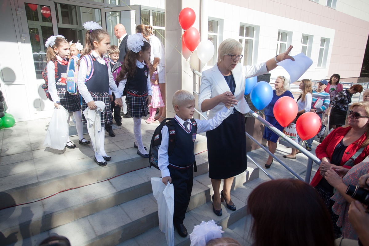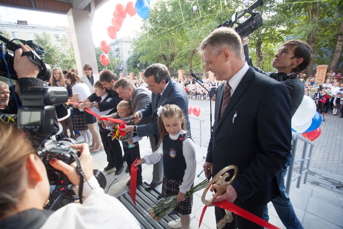 Анатолий Евгеньевич Локоть: «Новое здание – вам подарок ко Дню знаний. Это большой корабль, на котором вы поплывете к новым достижениям, новым знаниям. От этого зависит будущее России, оно в ваших руках. Сегодня для нас экзамен, а экзаменаторами являетесь вы: вам решать насколько это здание отвечает всем требованиям, насколько удобно вам будет здесь учиться. Я хочу сказать, – было трудно, но мы старались. Теперь вы здесь хозяева, и теперь вы отвечаете за порядок и содержание вашей новой школы», – обратился мэр к учащимся.