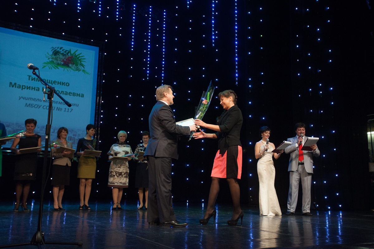 В торжественной встрече приняли участие около 1000 работников образования. На празднике состоялось чествование ветеранов, награждение 33 учителей за профессиональные заслуги и многолетний добросовестный труд. Золотой почетный знак «Достояние Сибири» за большой вклад в развитие молодежного педагогического сообщества был вручен президенту Городского клуба молодых педагогов Ольге Петровой.
