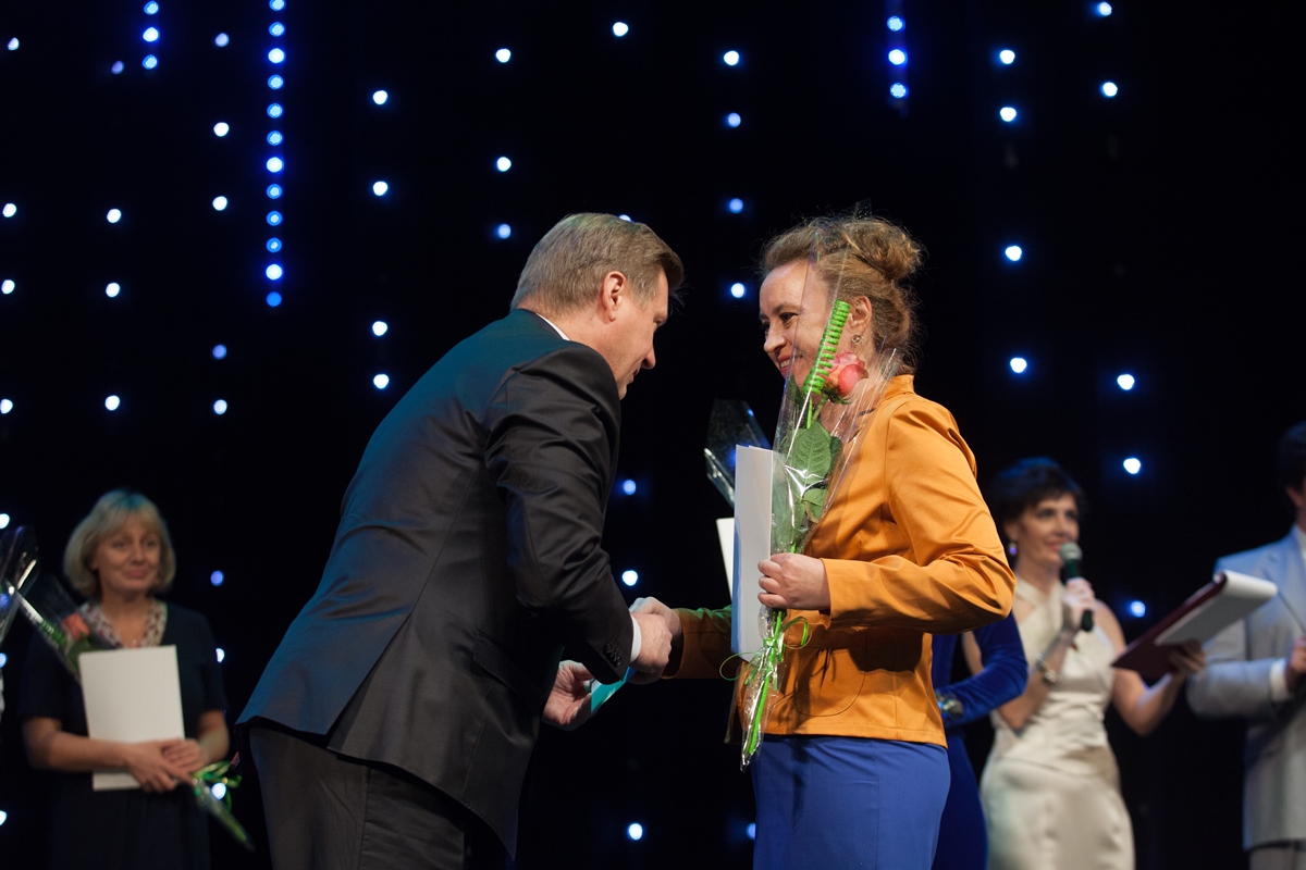 С профессиональным праздником учителей поздравили губернатор Новосибирской области Владимир Филиппович Городецкий, мэр Новосибирска Анатолий Евгеньевич Локоть, исполняющий обязанности председателя Совета депутатов города Новосибирска Дмитрий Владимирович Асанцев, начальник Главного управления образования мэрии города Новосибирска Наталья Николаевна Копаева, председатель Новосибирской областной общественной организации Профсоюза работников народного образования и науки РФ Светлана Геннадьевна Сутягина.